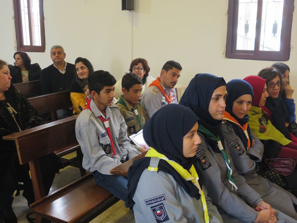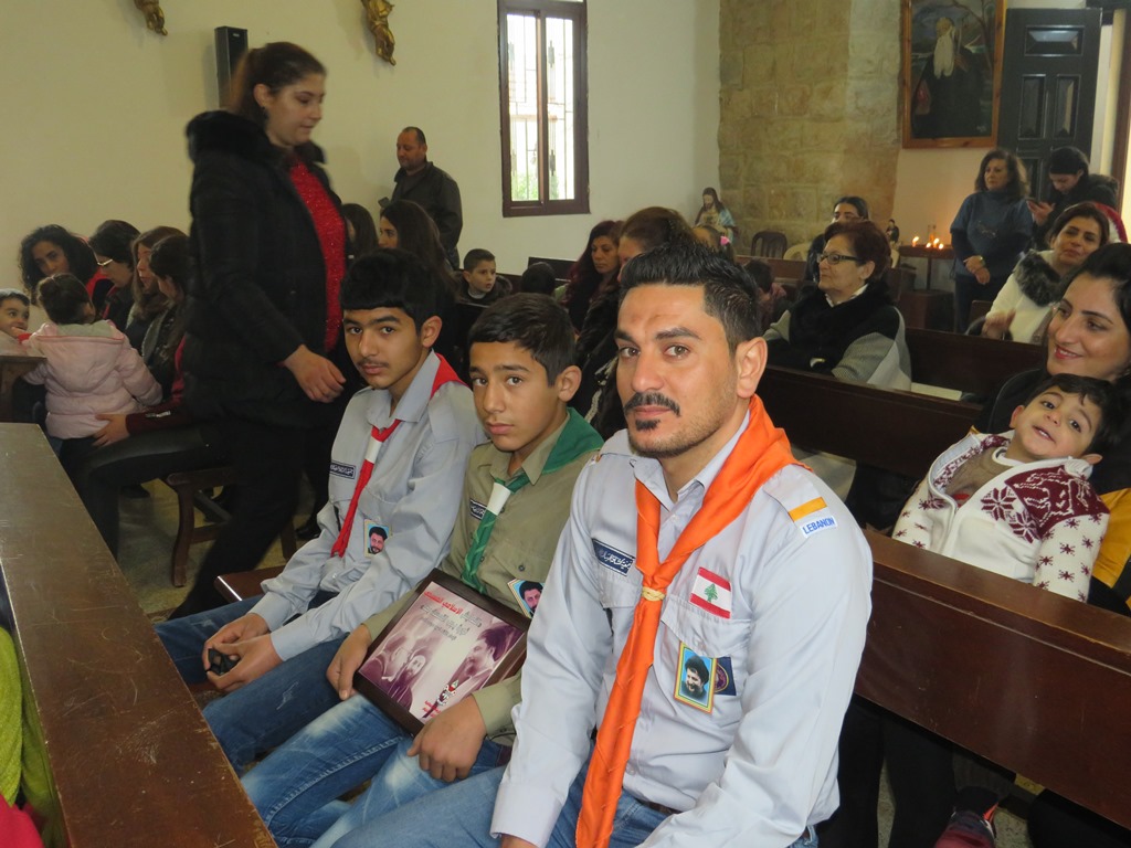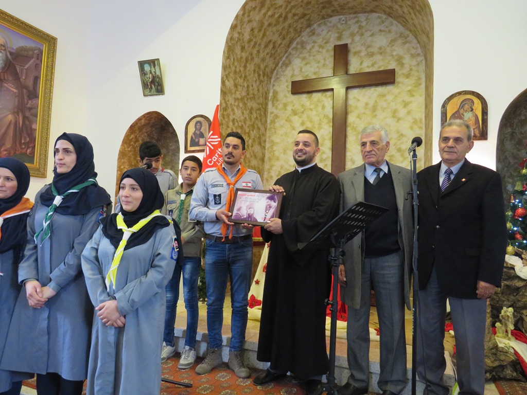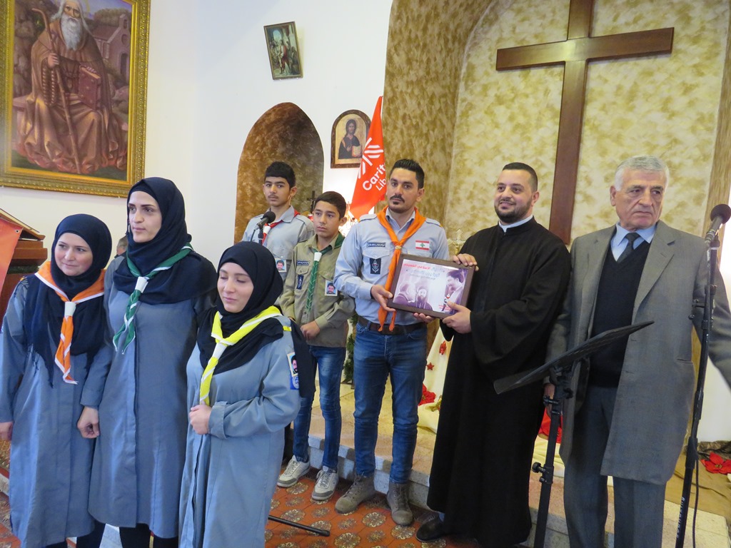 في ختام الحفل قدّمت فرقة من كشافة الرسالة للأب فرح لوحة ترمز للتعايش الوطني.