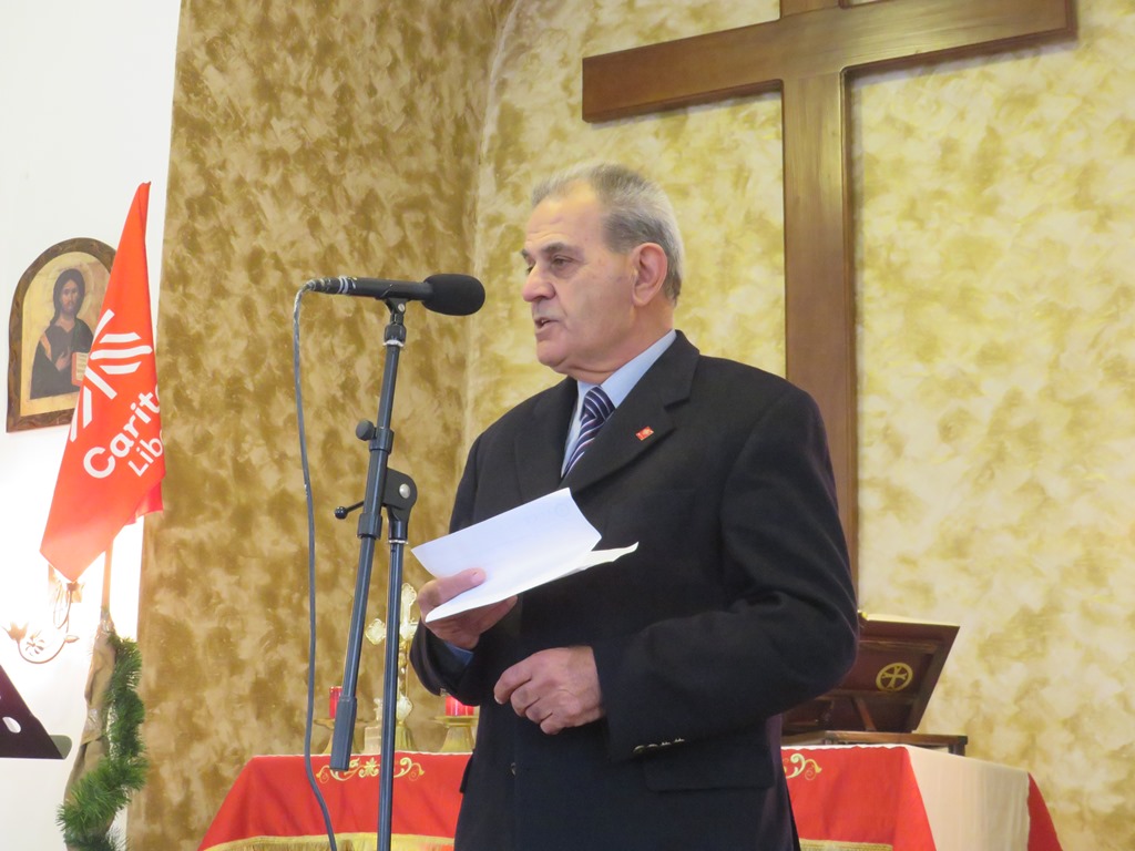 بداية الحفل ألقى السيد جرجس رزق، أمين سرّ أقليم كاريتاس في مرجعيون - حاصبيا كلمة موجزة هنأ فيها الحضور بالأعياد المجيدة وأضاء على الواجبات والمشاعر تجاه الفقراء.