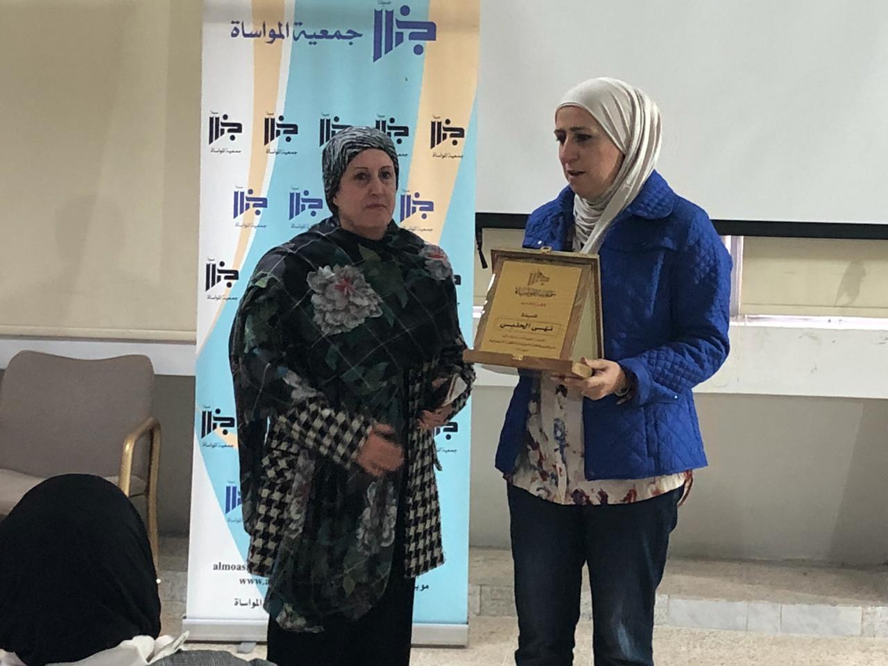 كما كرّمت المديرة نسرين نجم وهدى نقوزي من قسم المشاريع وذلك تقديراً للانجازات المحققة خلال عام 2018، وفاتن أبوخميس من قسم المحاسبة، ولمى أبوظهر من المركز الصحي الذي نال تنويهات شهرية من وزارة الصحة على مشروع الرعاية الصحية الأولية، ومحمد الأخضر وعامر القيسي لخدماتهما المخلصة في أقسام الجمعية كافة.