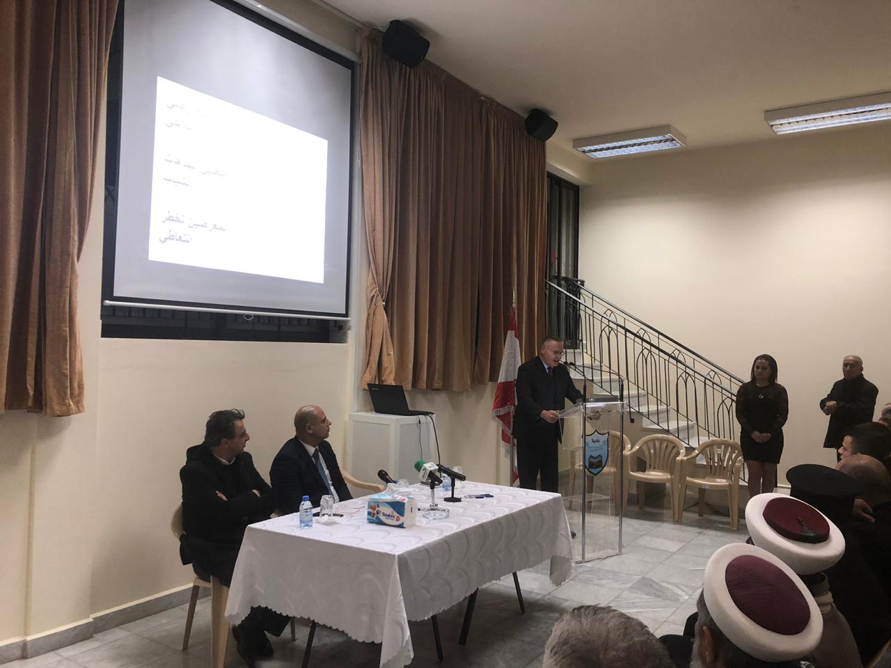 كما قدم عرضا مصورا عن ماهية المواد المخدرة وأنواعها وتأثيرها وخطورتها على المتعاطي، وسلط الضؤ على العوارض الجسدية التي تظهر على المتعاطي والتي من خلالها يمكن الأهل من التنبه الى مشكلة التعاطي لدى اولادهم. كما أسهب عن الإدمان، واسبابه وتأثيره على الفرد والمجتمع والوطن. وعرض القوانين المتعلقة بجرائم المخدرات ، والعقوبات التي يخضع لها كل من التاجر والمروج والمتعاطي.