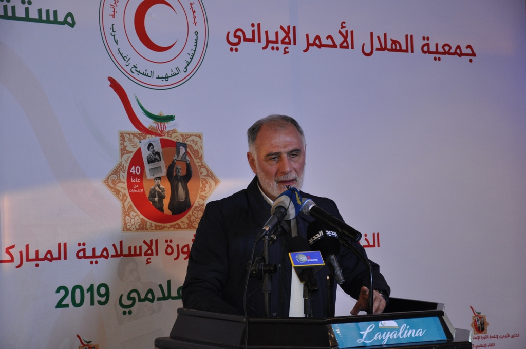 وبعد اي من الذكر الحكيم للمقرىء حسين حايك، ثم النشيدين الوطني اللبناني والايراني كلمة ترحيب لمدير العلاقات العامة في مستشفى الشيخ راغب حرب الزميل رائف ضيا، تلاه كلمة لفلاح الذي رحب بالحضور، ووجه الشكر لفنيش وقودرزي على عطاءاتهم المستمرة. بعدها أعطى نبذة عن عمل المستشفى وتطورها بالسنوات السابقة بشكل كبير، مؤكدا "دور المقاومة الاساسي في كل ما وصلنا اليه، والتي انبثقت بعد الثورة الإيرانية".