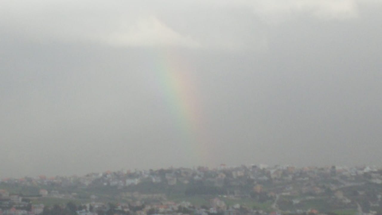 تلك الصورة التقتها يوم أمس الإعلامي الصديق لطفالله ضاهر، ورغم الرؤية السيئة والضبابية بسبب سوء الأحوال الجوية، إلا أن ذلك القوس شكّل تاجاً سحرياً ملونا غطّى سماء الخيام وأضفى عليها جمالاً مضافاً.