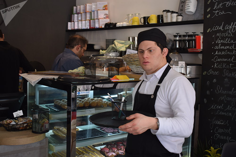 بدورها تقول فرح المسؤولة عن المحاسبة في المقهى، ل"سبوتنيك":" أعمل على المحاسبة ومسؤولة عن الذين يعانون متلازمة داون، أصلح لهم أخطائهم واساعدهم، أشعر أنهم أخوتي".