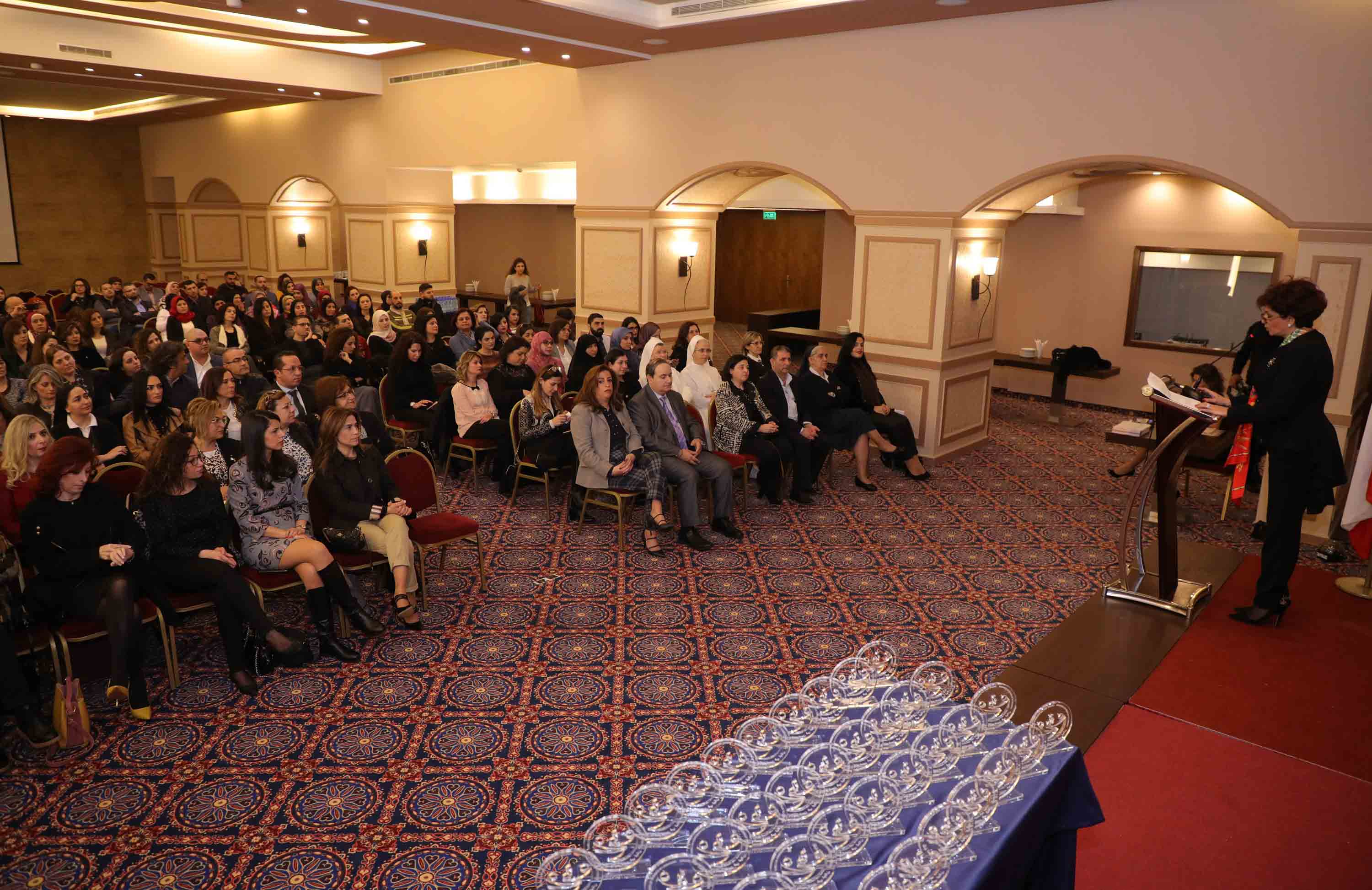 استهلّت النقيبة الحفل بكلمة رحّبت فيها بحضور ممثل معالي وزير الصحة العامة فالوزارة كانت شريك حقيقي في إطلاق البرنامج الذي أعدّ فكرته النقباء السابقون من ضمن خطة عمل واستراتيجية النقابة بهدف الحدّ من الأخطاء الطبية وضمان الكفاءة والجودة والممارسة التمريضية الآمنة. وشكرت النقيبة جميع المشاركين من كافة المستشفيات الذين أبدوا التزاماً مميزاً وعملاً جدياً يدلّ على أهمية المشروع ونتائجه على القطاع التمريضي.