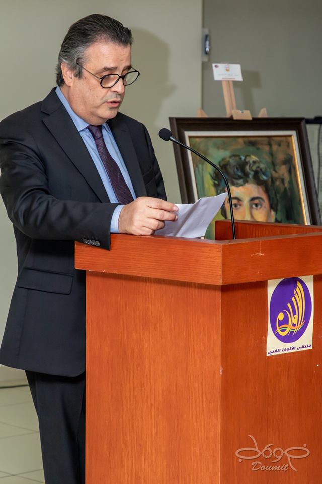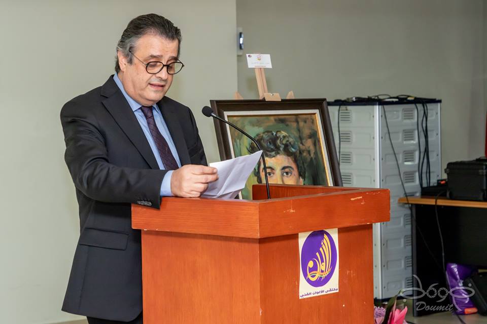 وفي الختام تم توزيع دروع تقديرية على كل من النائب روجيه عازار والتشكيلية سعيدي ولوحة تخطيط من قبل الفنان باسم بلدي الى الاستاذ انطوان جبارة .