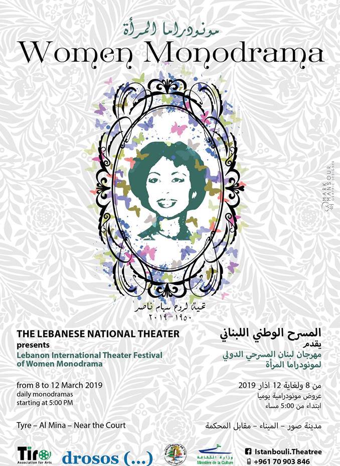 أعلنت إدارة مسرح إسطنبولي وجمعية تيرو للفنون عن العروض المشاركة ضمن الدورة الأولى من مهرجان لبنان المسرحي الدولي لمونودراما المرأة والذي سيقام في الفترة الممتدة من 8 ولغاية 12 آذار المقبل تزامنا مع يوم المرأة العالمي واحتفاء بتاء التأنيث ونون النسوة وإظهار قوتها في لغة الضاد مسرحياً وفنياً ،ويحمل المهرجان تحية لرائدة المسرح اللبناني الراحلة الدكتورة سهام ناصر.