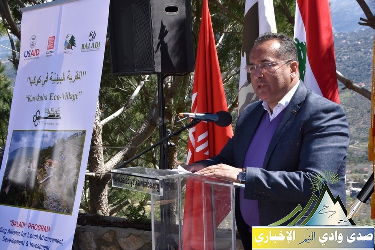 تلاها كلمة رئيس بلدية كوكبا أيلي رفيق ابو نقول شكر كل من ساهم بإنجاح هذا المشروع من جمعيات وشركاء ومتعهدين ومن اعضاء المجلس البلدي الذين قبلوا التحدي بإنجاز القرية البيئية KEV ، والتي هي من ضمن سلسلة مشاريع البعض تم انجازه والباقي يتم العمل للبدء بتنفيذه وكل هذا تنفيذاً للوعد الذي قطعناه كمجلس بلدي بأن كوكبا ستكون لؤلؤة القضاء ومزاراً سياحياً وبيئياً يحتذى به .