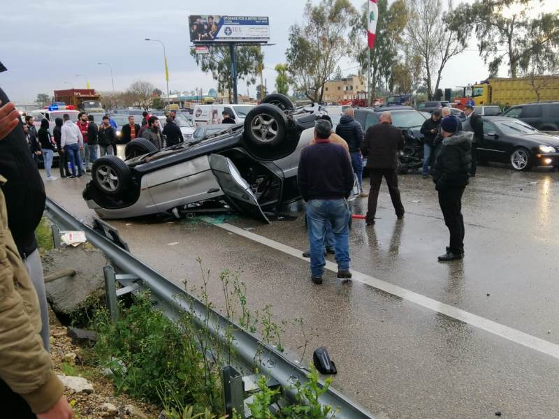 وقع تصادم عند اوتوستراد الغازية، بين سيارة من نوع مرسيدس سوداء اللون، وسيارة رباعية الدفع من نوع "BMW- X5" فضية اللون، أدى إلى انقلاب إحدى السيارتين وسط الطريق، وسقوط عدد من الجرحى نقلتهم سيارات الإسعاف إلى مستشفيات المنطقة.