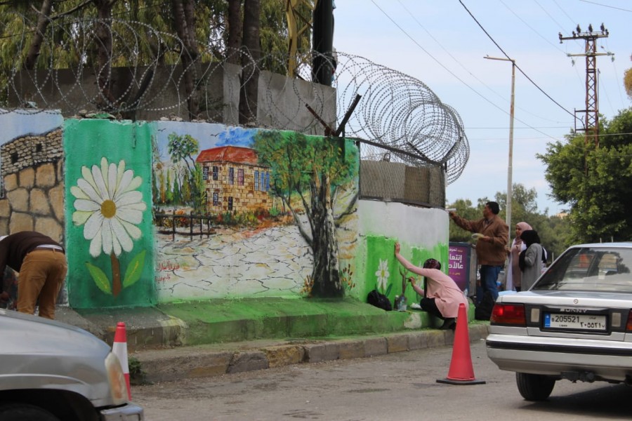 في مدرسة الفنون الإنجيلية صيدا سمبوزيوم على دوار الأمركان، تم فيه رسم جداريات على الدشم الموضوعة هناك جراء الأحداث.