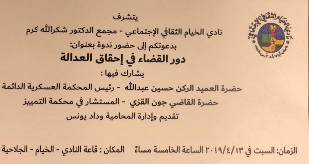 دعا نادي الخيام الثقافي الإجتماعي - مجمّع الدكتور شكرالله كرم إلى حضور ندوة تحت عنوان: