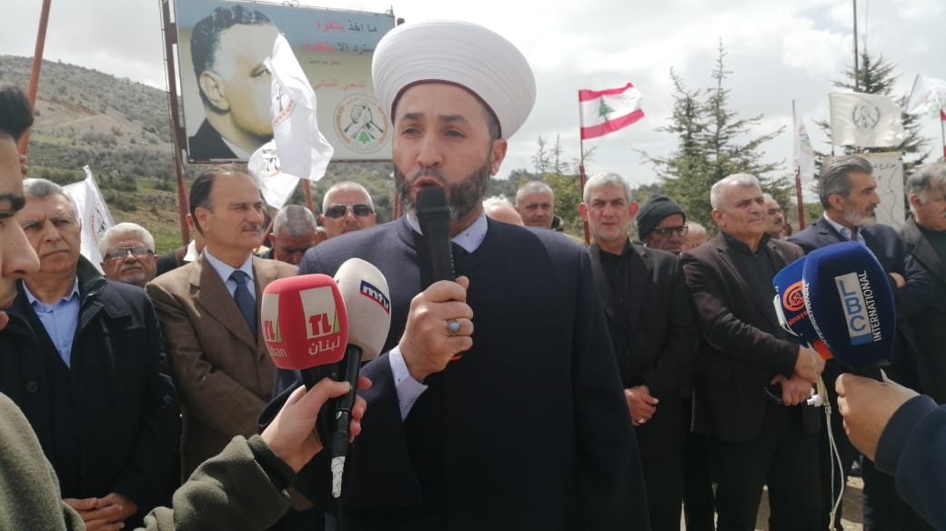 وألقى القاضي الشيخ إسماعيل دلة كلمة مفتي مرجعيون حاصبيا الشيخ حسن دلي أكد فيها أن لهذه الأرض الطاهرة في المزارع والتلال والعرقوب رجال تحرسها مهما كبرت المؤامرات ،ففيها جبلت الدماء وفيها مشهد الطير وتطل على الجليل وتحضن القدس،منوها بثلة من الرجال الأكارم الذين حملوا هذه القضية لتصل إلى العالم أجمع،واصفا من يتخلى عن هذه الأرض بالخائن،مذكرا بأن اليهود جادلوا الله بالبقرة ولا يمكن التفاوض معهم،مطالبا وزارة الخارجية بالعمل لإثبات حقنا كي لا نصبح لاجئين في بلدنا.