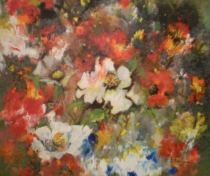 فريال فياض فنانة ولدت من رحم الأرض .صنعت ريشتها من خشب الورد وحملت في قلبها عطر الجنوب ورسمت على وجه السنين تجاعيد الحقول.