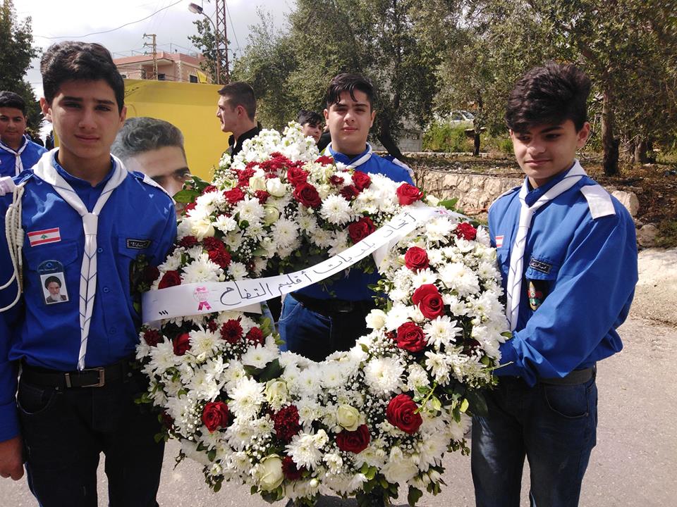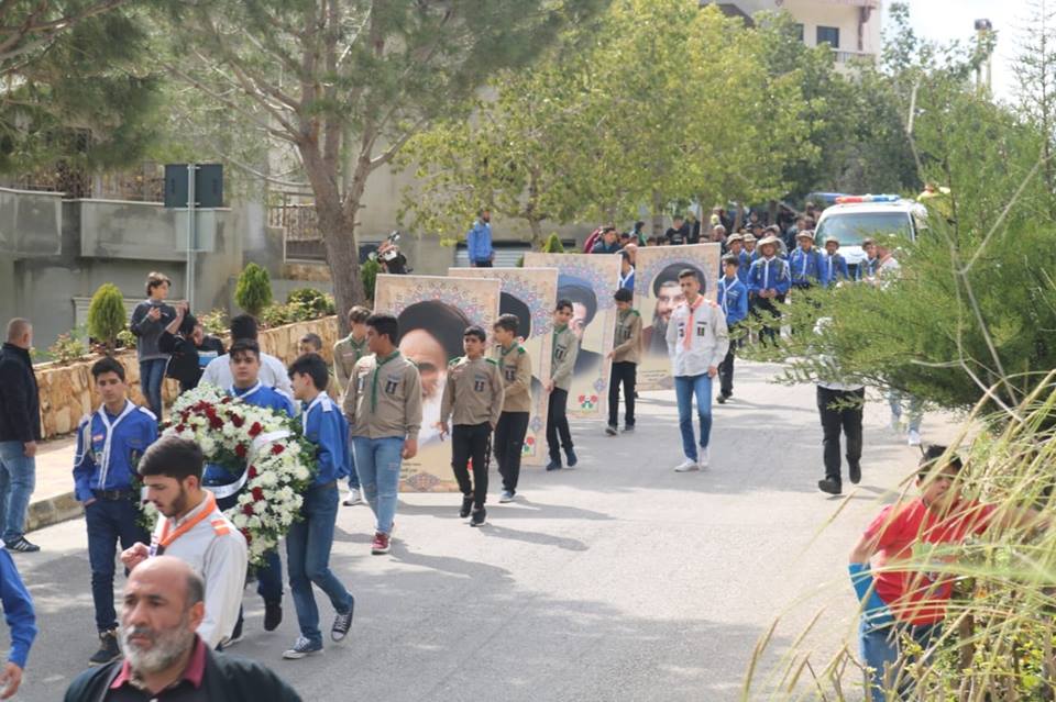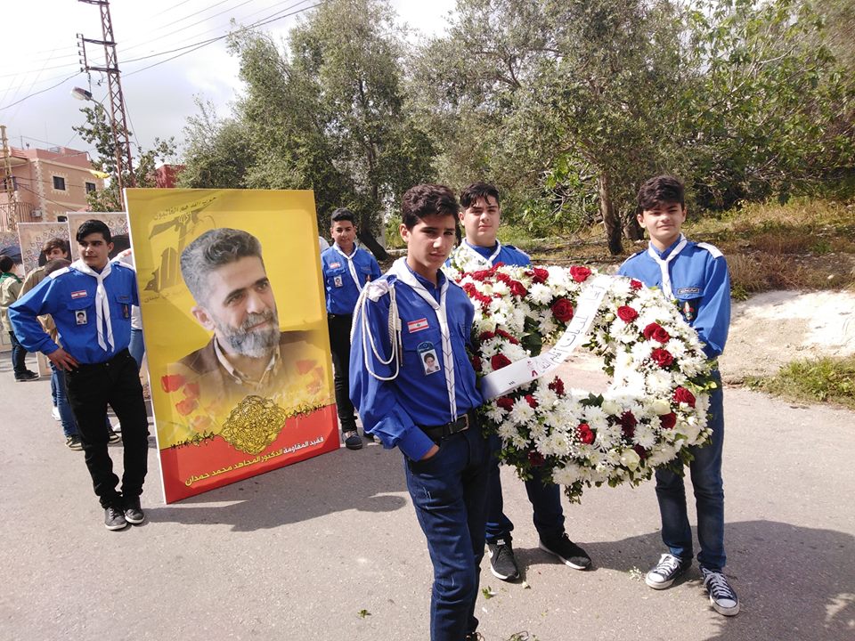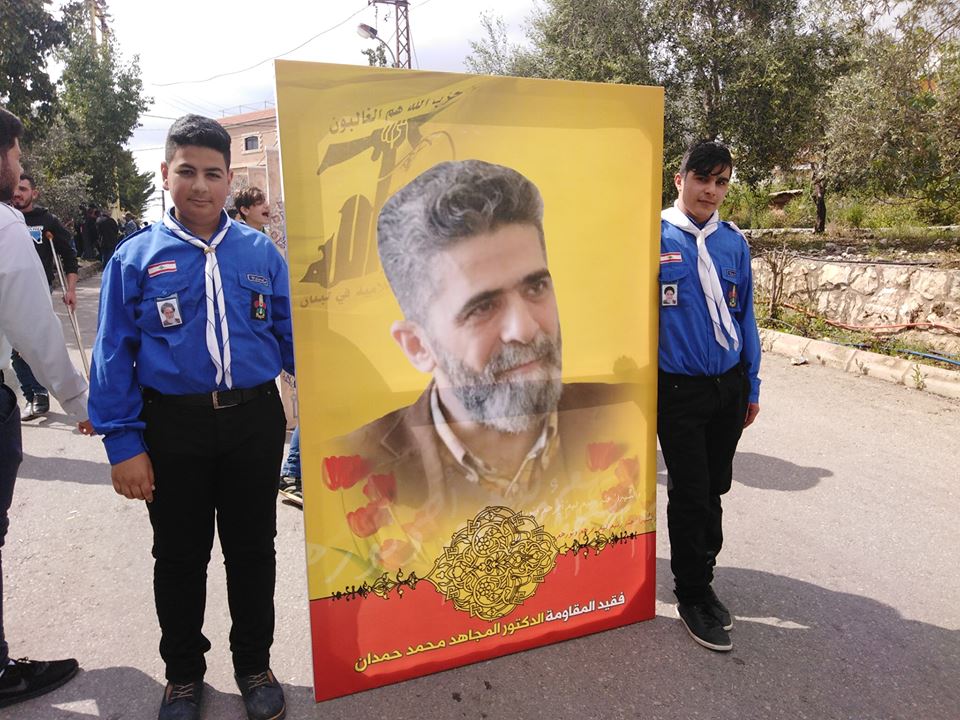 جثمان الفقيد حمل على الاكف وقد لف براية حزب الله ، وسار في شوارع البلدة في موكب مهيب تقدمه فرق من كشافة الامام المهدي وحملة الاكاليل وصور للفقيد حمدان اضافة الى صور للامام الراحل روح الله الخميني والسيد القائد الخامنئي والامام المغيب موسى الصدر وامين عام حزب الله السيد حسن نصرالله ، وصولا الى جبانة البلدة حيث ووي الثرى