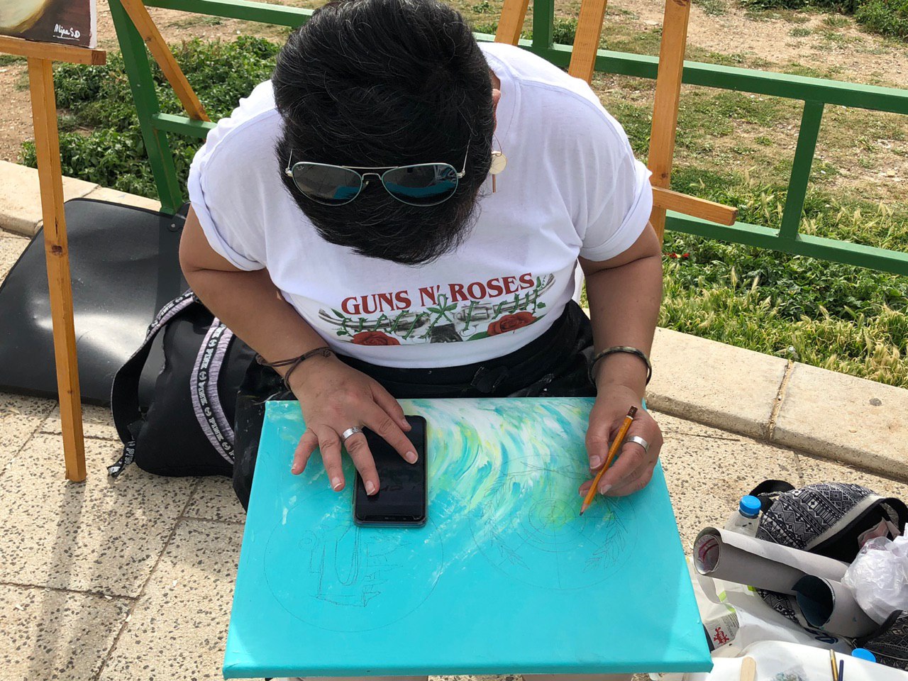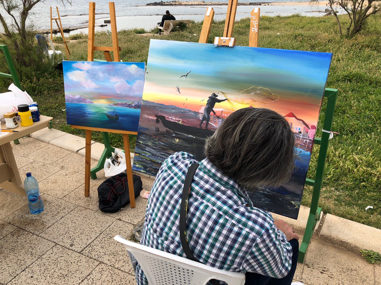 وتوزع الفنانون التشكيليون على الكورنيش وحدائقه، حيث استوحوا مواضيع لوحاتهم من أجواء البحر والمناظر الطبيعية والمعالم الأثرية، وتخللت النشاط زيارة لوفد من السياح ضمن الجولات السياحية المقررة من اللجنة المنظمة للمهرجان.