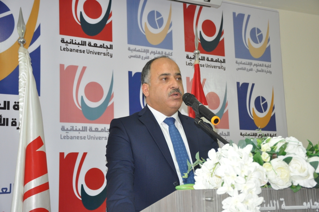 كلفني رئيس الجامعة اللبنانية البروفسور فؤاد ايوب أن أنقل إليكم تحياته وتقديره للجهود التي تبذلونها، وتمثيله في رعاية هذا المؤتمر العلمي الأول لكلية العلوم اﻹقتصادية وإدارة الأعمال في النبطية والمنظَّم من قبل الفريق العلمي (GAREB) الذي أعلِنَ عنه رسمياً في 1 أيار 2018. وبعد مرور سنة استطاع هذا الفريق بقيادة مديره التنفيذي ورئيس المؤتمر البروفسور محمود مراد، القيام بهذا اﻹنجاز وإنجاحه على الصعيدين العلمي والتنظيمي. من القلب أوجه له تحية وللباحثين فرداً فرداً من الكلية وخارجها، كما وأشُدُّ على أياديهم مُعبِّرا لكل فرد منهم عن خالص شكري وامتناني لجهودهم والتزامهم بقيَم الأستاذ الجامعي الأصيل الذي يرى في الجامعات منارة علمية وفكرية وأساساً لبناء وطن يسود فيه التخطيط السليم في كلِّ مرافق الحياة ودعم الجهود الخيِّرة بوضع اﻹنسان المناسب في المكان المناسب.