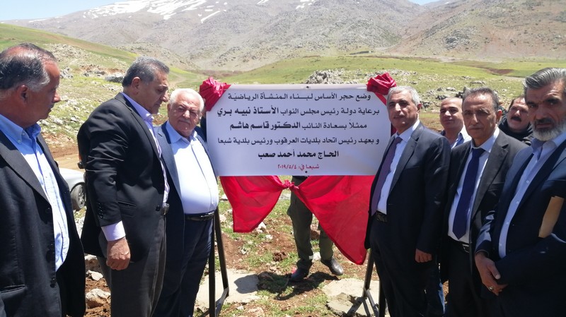 برعاية كتلة التنمية والتحرير ممثلة بالنائب قاسم هاشم، وبدعوة من رئيس بلدية شبعا محمد صعب واعضاء المجلس البلدي، تم وضع حجر الأساس لبناء منشأة رياضية في محلة جنعم الى الشمال من بلدة شبعا في العرقوب، على مساحة تزيد عن 5000 متر مربع، وذلك بحضور مدير عام الشباب والرياضة زيد خيامي، قائمقام حاصبيا أحمد كريدي، رئيس دائرة أوقاف حاصبيا ومرجعيون الشيخ جهاد حمد، العقيد الركن جوزيف مزرعاني ممثلا الجيش اللبناني، رئيس هيئة ابناء العرقوب محمد حمدان، رؤساء بلديات ومخاتير وممثلين عن الدفاع المدني وفعاليات.
