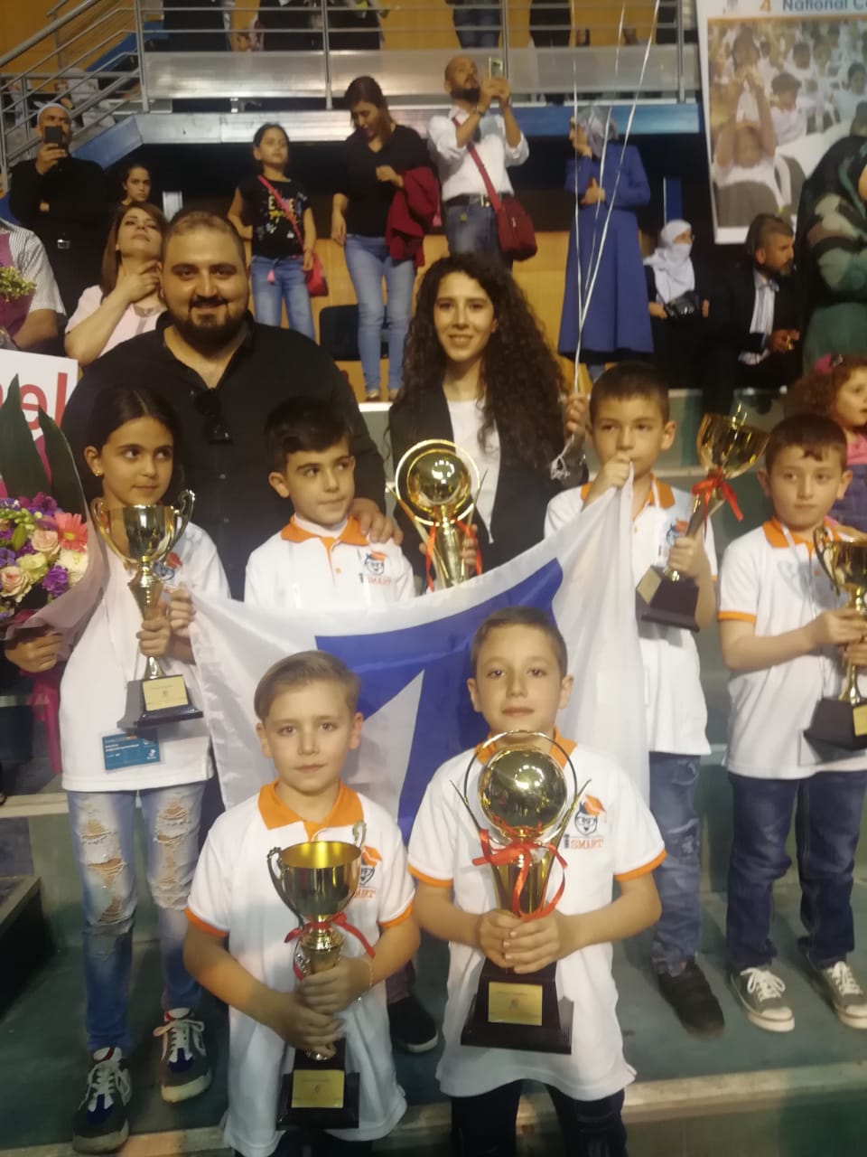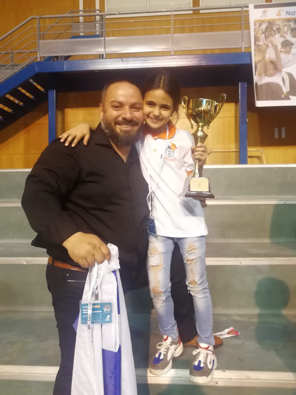 اشارة الى ان الطفلة غريتا عاصي (9 سنوات) في الصف الرابع ابتدائي تبارت مع الصف السادس ابتدائي وفازت بالبطولة.