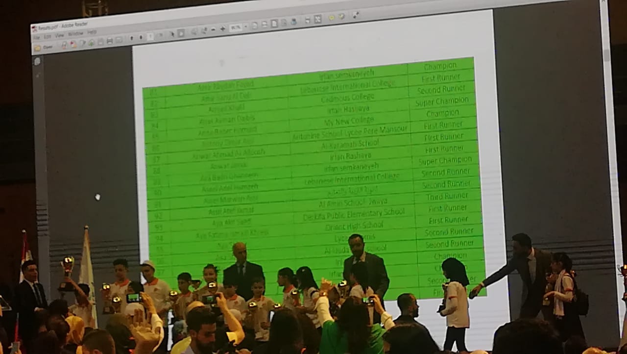 حصد ثلاثة عشر تلميذا من منطقة مرجعيون على اعلى الجوائز في المباراة الوطنية الرابعة في الحساب الذهني على صعيد لبنان، التي تبارى فيها 1000 طالب من مختلف مدارس لبنان.