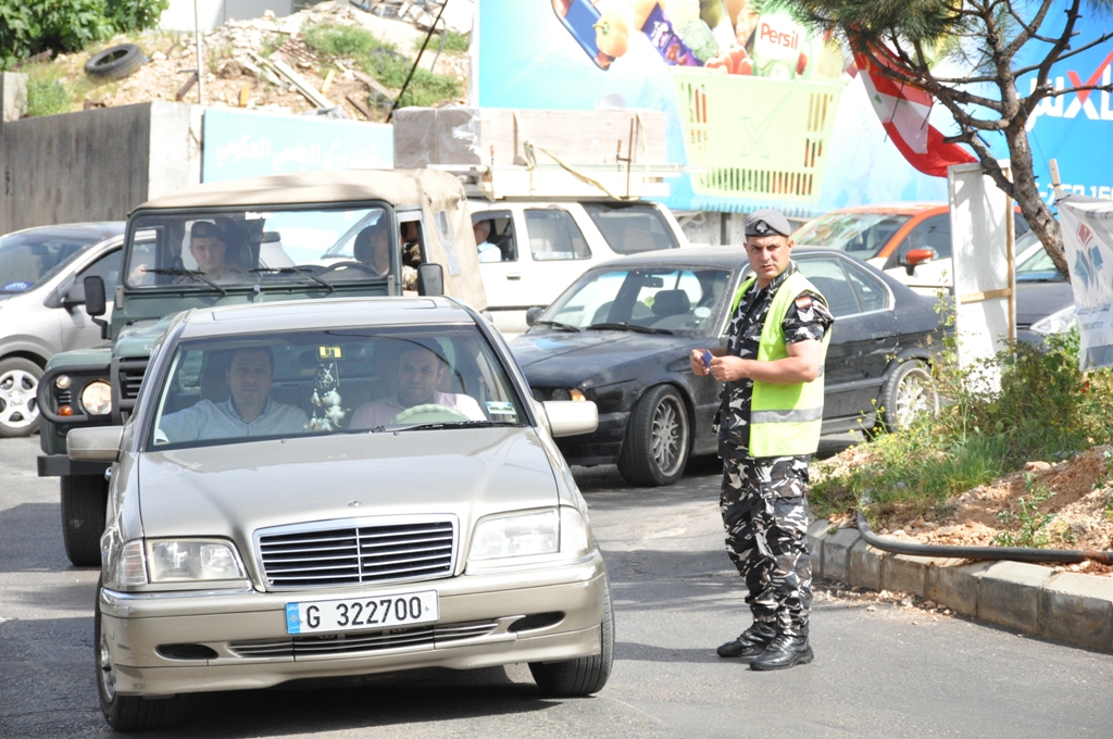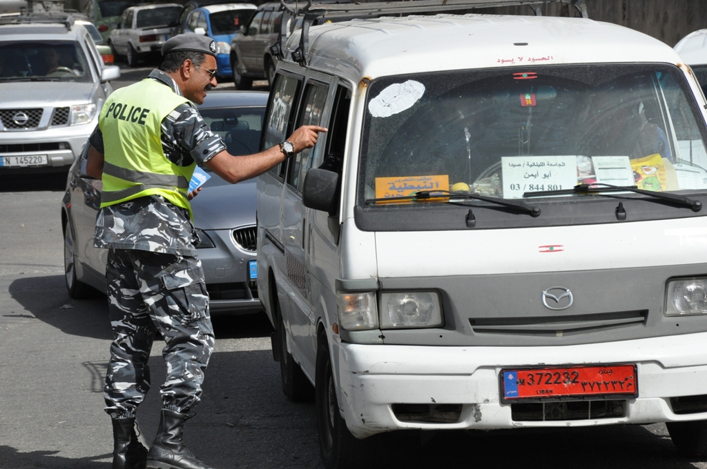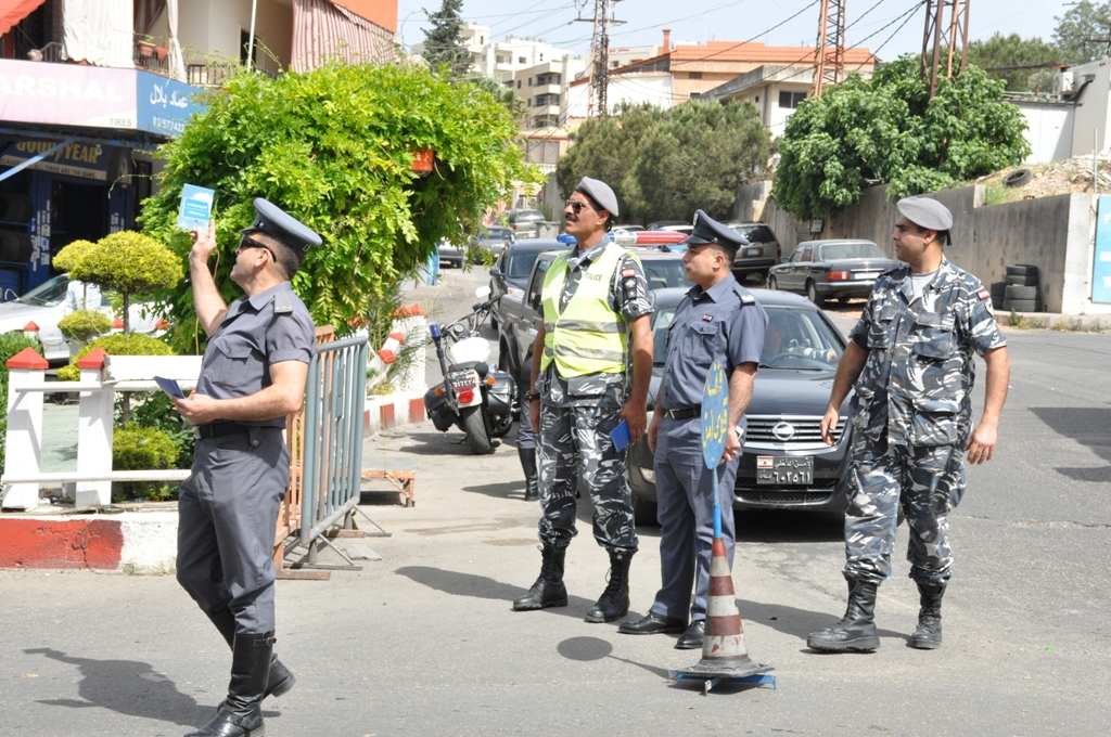 واقيمت الحواجز على مداخل مدينة النبطية وعلى طول اوتوستراد النبطية - الزهراني ووزع عناصر قوى الامن الداخلي على الحواجز منشورات حول قانون السير الجديد.