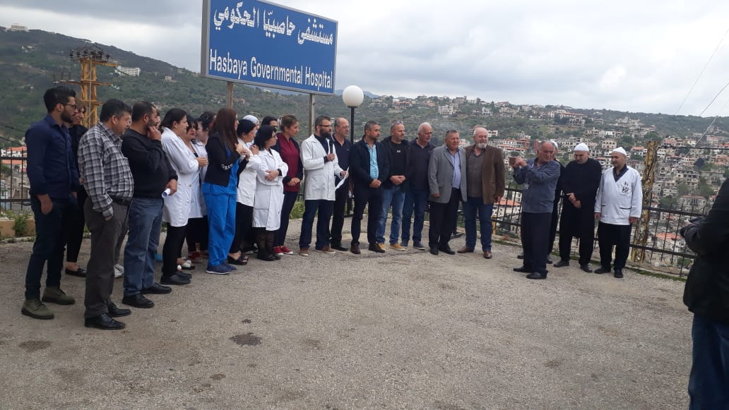 نفذ موظفو مستشفى حاصبيا الحكومي اضرابا في باحة المستشفى، وأصدروا بيانا أعلنوا فيه انه "نظرا للاوضاع المعيشية الصعبة التي نمر بها كموظفي مستشفى حاصبيا الحكومي لجهة عدم قبض رواتبنا عن خمسة اشهر وعدم وجود حل قريب في الافق، اصبحنا عاجزين عن خدمة اهلنا في منطقة حاصبيا وقضائها وغير قادرين على العمل".