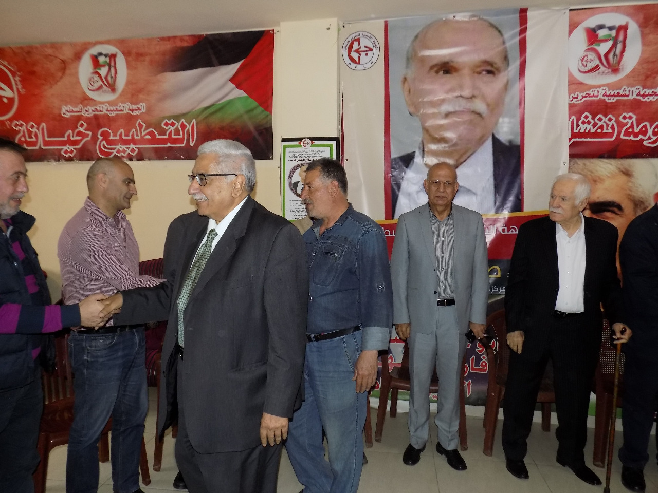 استقبلت قيادة الجبهة الشعبية لتحرير فلسطين يوم الخميس 9/5/2019 الحشود الغفيرة لتقديم التعازي لرفاقهم في النهج، والجبهة والثورة، وفي مقدمة المستقبلين عضو المكتب السياسي للجبهة الرفيق مروان الفاهوم، ومسؤول الجبهة في لبنان الرفيق مروان عبد العال، بالإضافة إلى قيادة فرع لبنان.