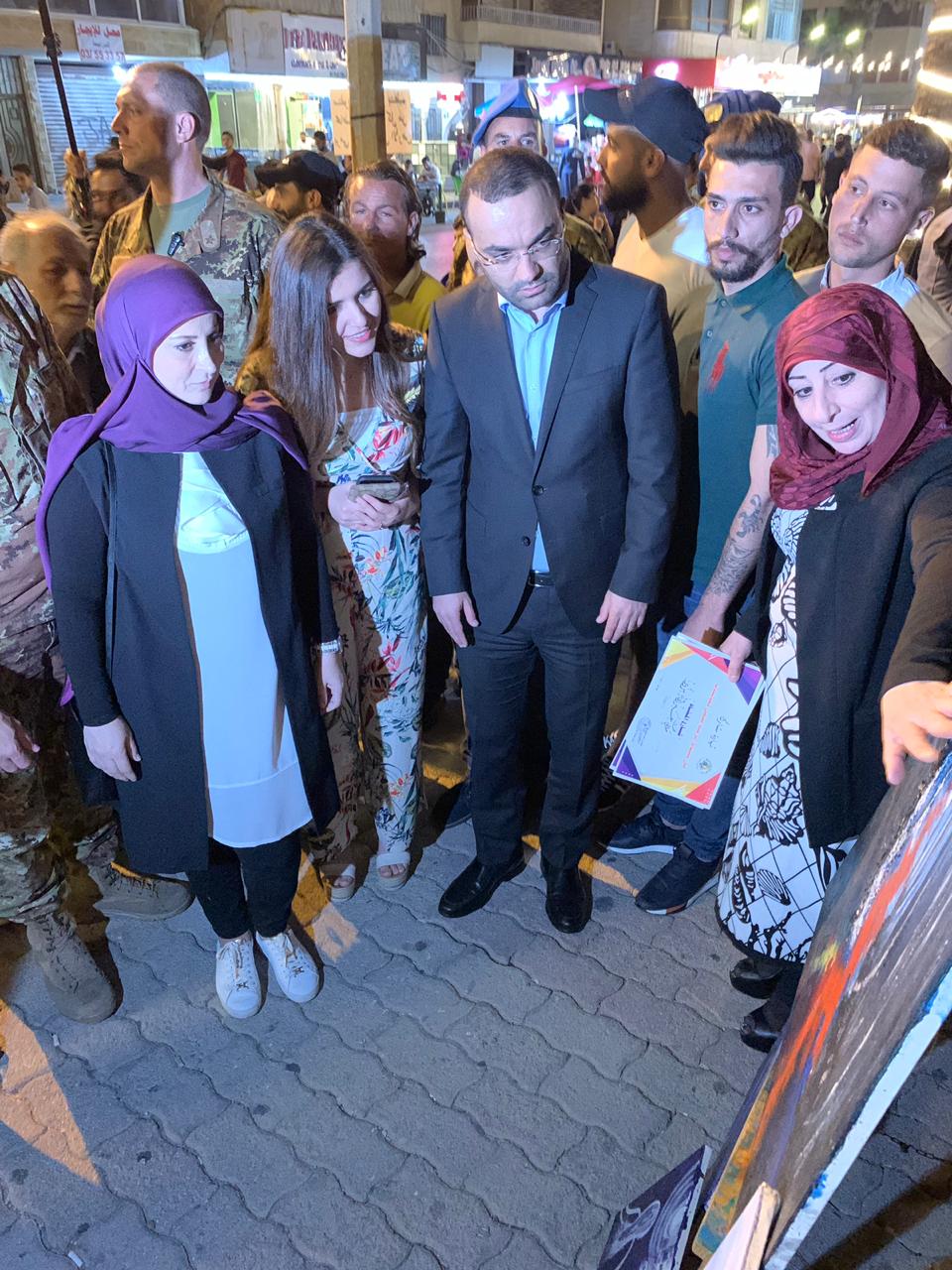كما جال داوود على الفنانين المشاركين واستعرض لوحاتهم المتنوعة المستوحاة من الإرث الحضاري للمدينة حيث أثنى على جهودهم ورسوماتهم الواعية لنشر الثقافة.