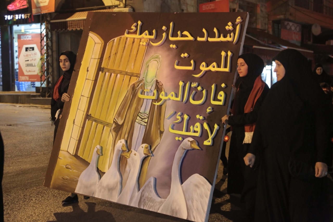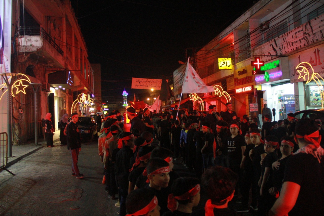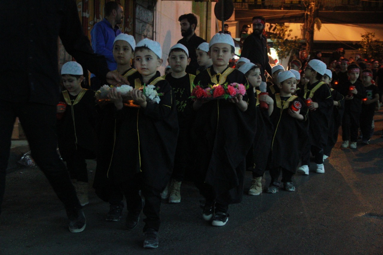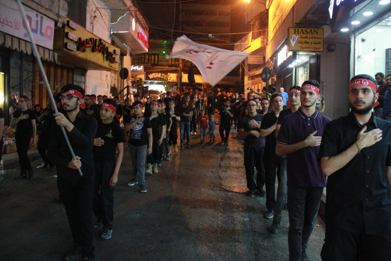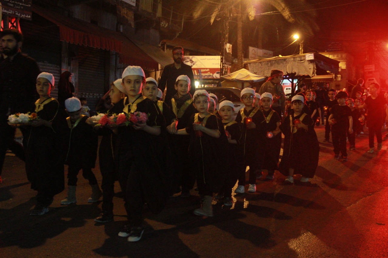 المسيرة جابت شوارع مدينة النبطية وسط نداءات الحزن ولطم الصدور، وصولاً حتى مسجد الإمام الحسين (ع) في المدينة حيث أقيمت حلقات لطم بحضور الرادود حسين عجمي.