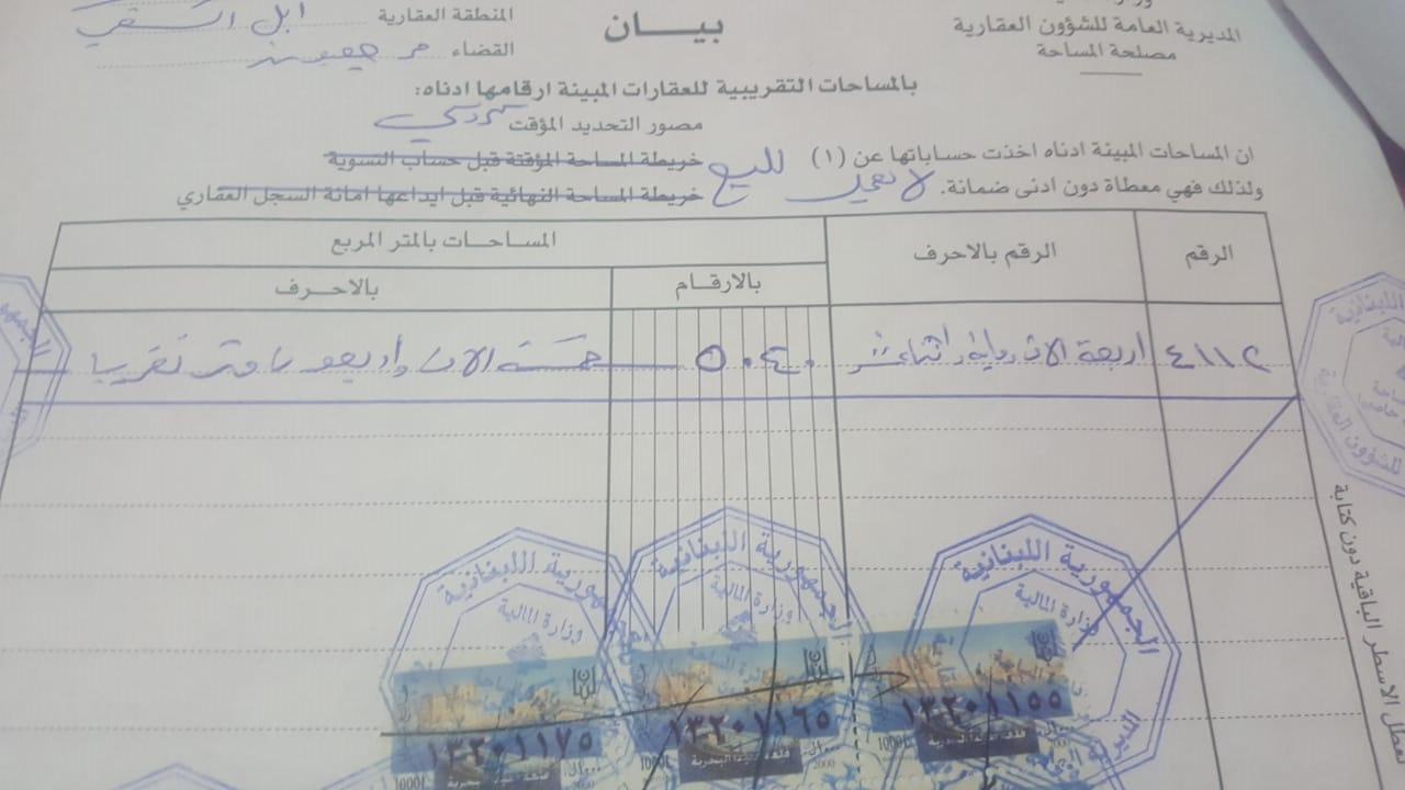 - العقار الأول مساحته حوالي 5 دونم، رقمه 4112 يقع على كتف مجرى نهر الحاصباني، ضمن منطقة إبل السقي العقارية.