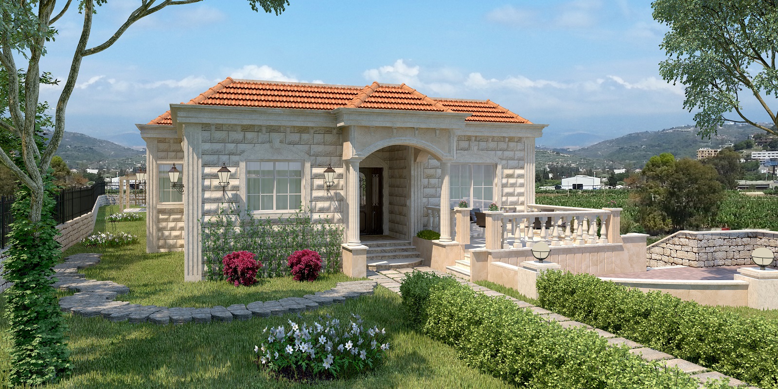 - أما أعمال الواجهات والأعمال الخارجيه فهذا موضوع يتطلب مقالا آخر: تلبيس حجر صخري أو ورقة يتبعها أعمال دهان