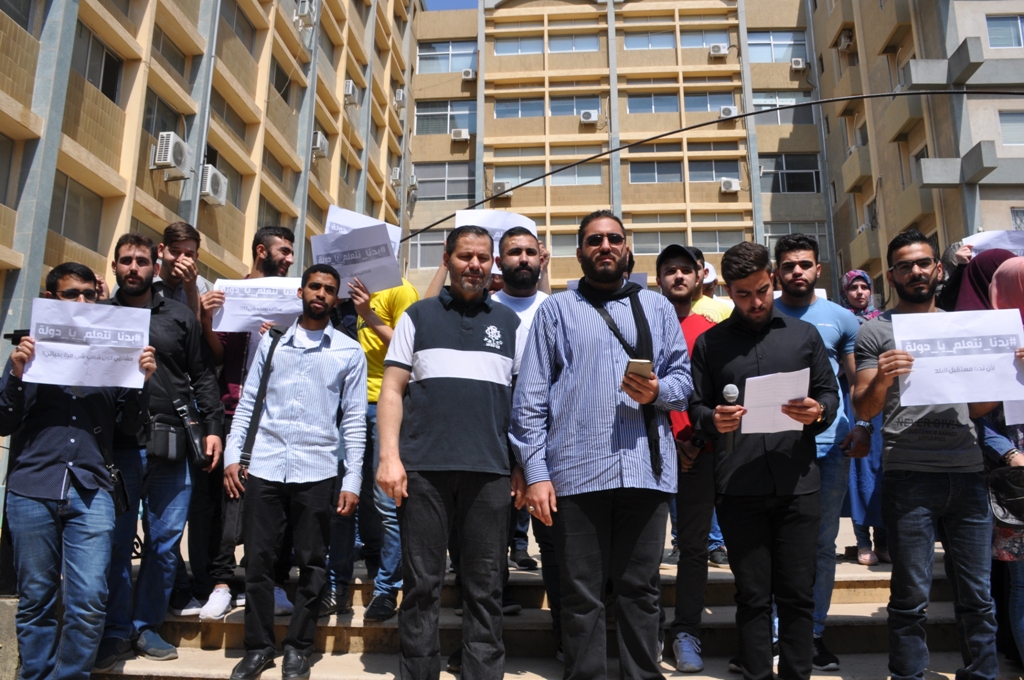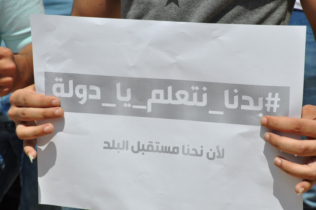 وحمل عدد من الطلاب المعتصمين لافتات كتب على بعضها " بدنا نتعلم يا دولة،لان نحن مستقبل البلد"، و" مش حلوة بلانا بدنا نتعلم "، و" شو بخصوص مستقبلنا بدنا نتعلم".