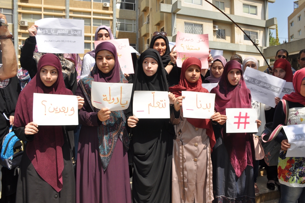 تحت شعار «بدنا نتعلم يا دولة» نفذ طلاب المجالس الطلابية في الفرع الخامس في كليات العلوم، الاداب، العلوم الاجتماعية، الصحة" في الجامعة اللبنانية في النبطية وصيدا ، اعتصاما امام مدخل كلية العلوم في النبطية للمطالبة "باتخاذ الاجراءات اللازمة في سبيل تعليق اضراب اساتذة الجامعة اللبنانية ، وعودة الطلاب لاستئناف عامهم الدراسي الذي بات مهددا".