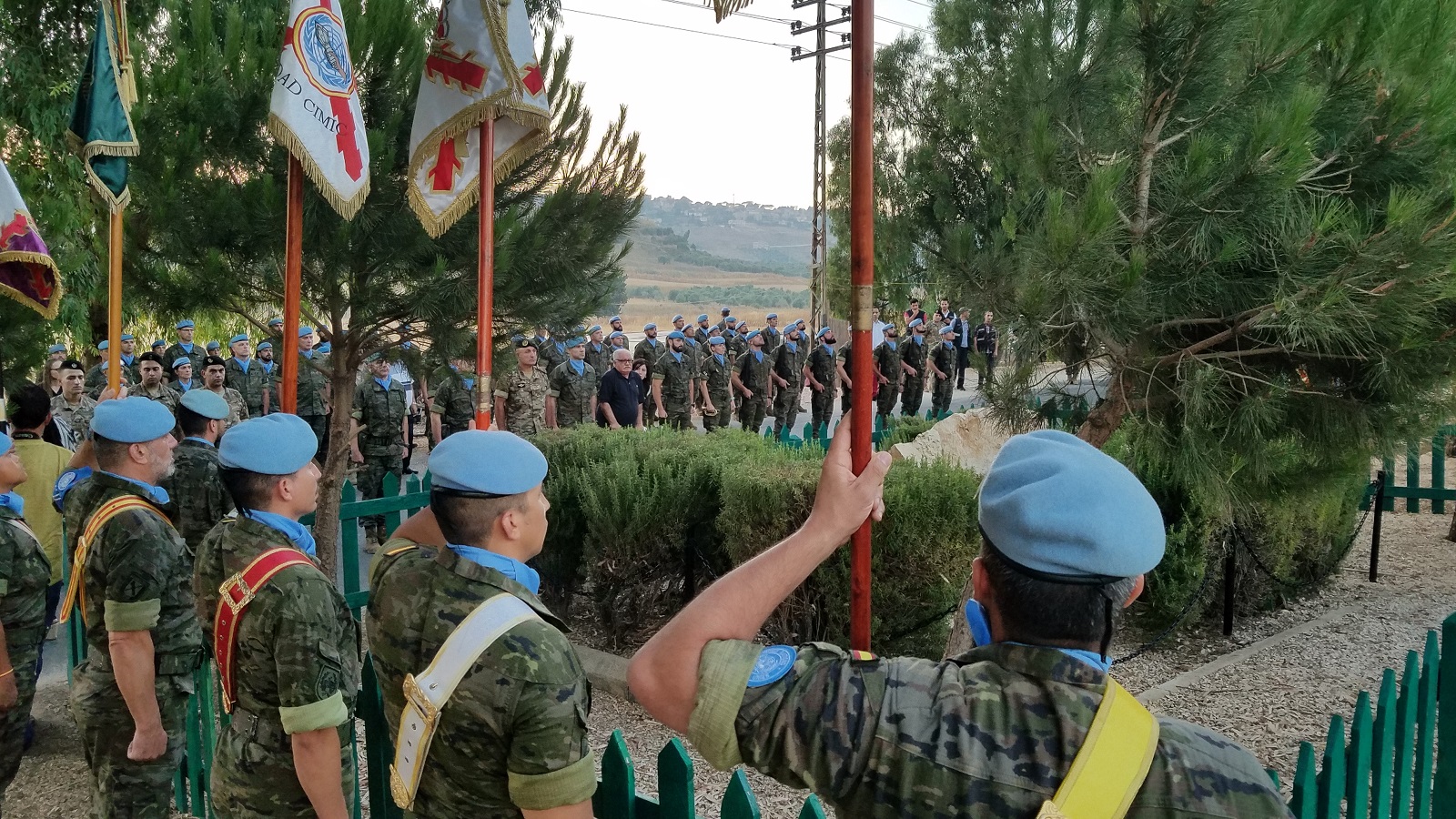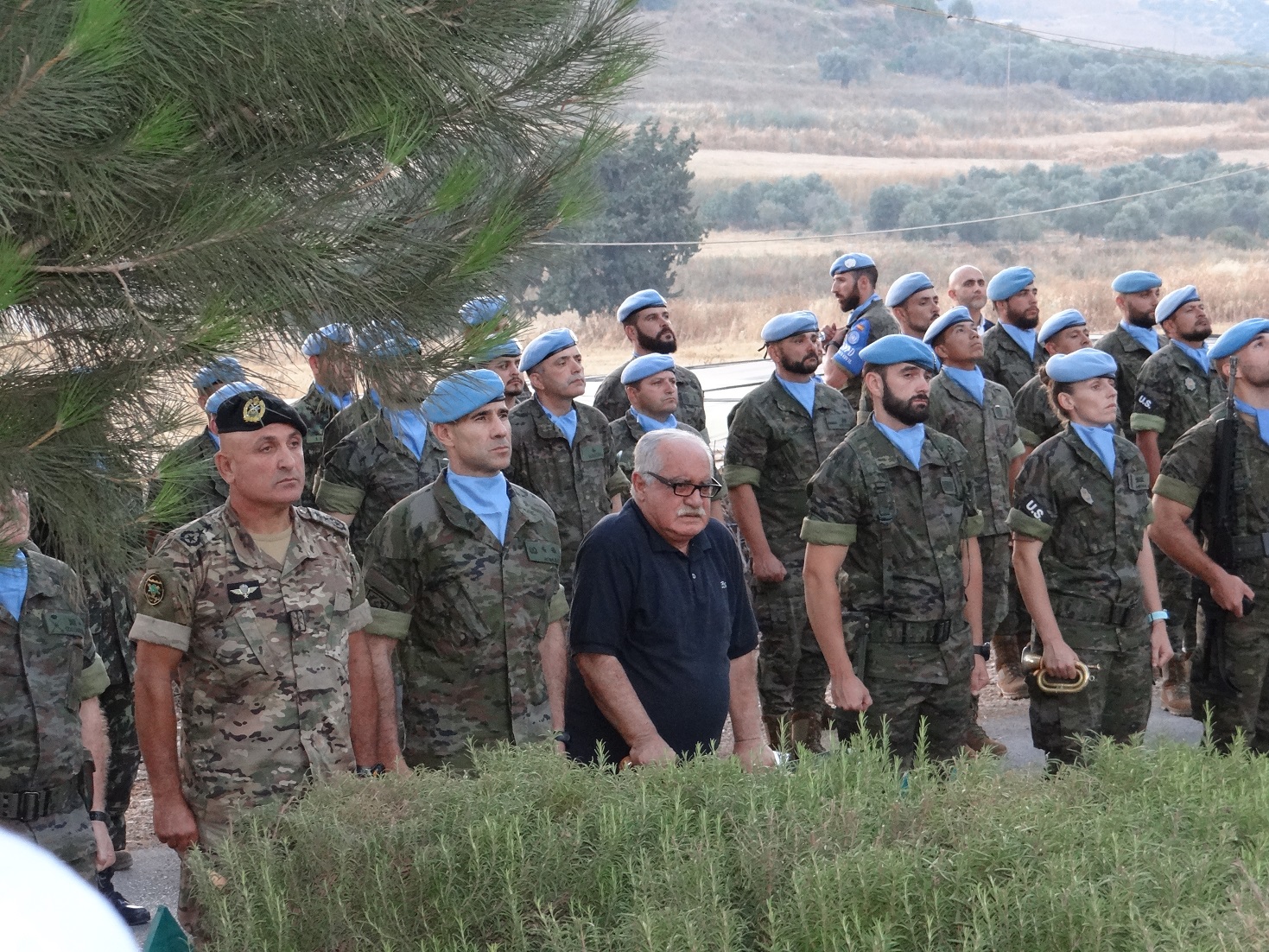 وضع الجنرال دل بيرلا والعقيد في الجيش اللبناني زغيب اكليلا من الزهر على النصب التذكاري للجنود المظليين الشهداء، ثم أديا التحية العسكرية، على وقع موسيقى نشيد الموتى ولحن التعظيم، فيما نكست ثلة من جنود الشرف، رايات الفرق العسكرية المشاركة في الوحدة الإسبانية، وقد رفع الاب سيزار الصلاة من اجل ارواحهم.