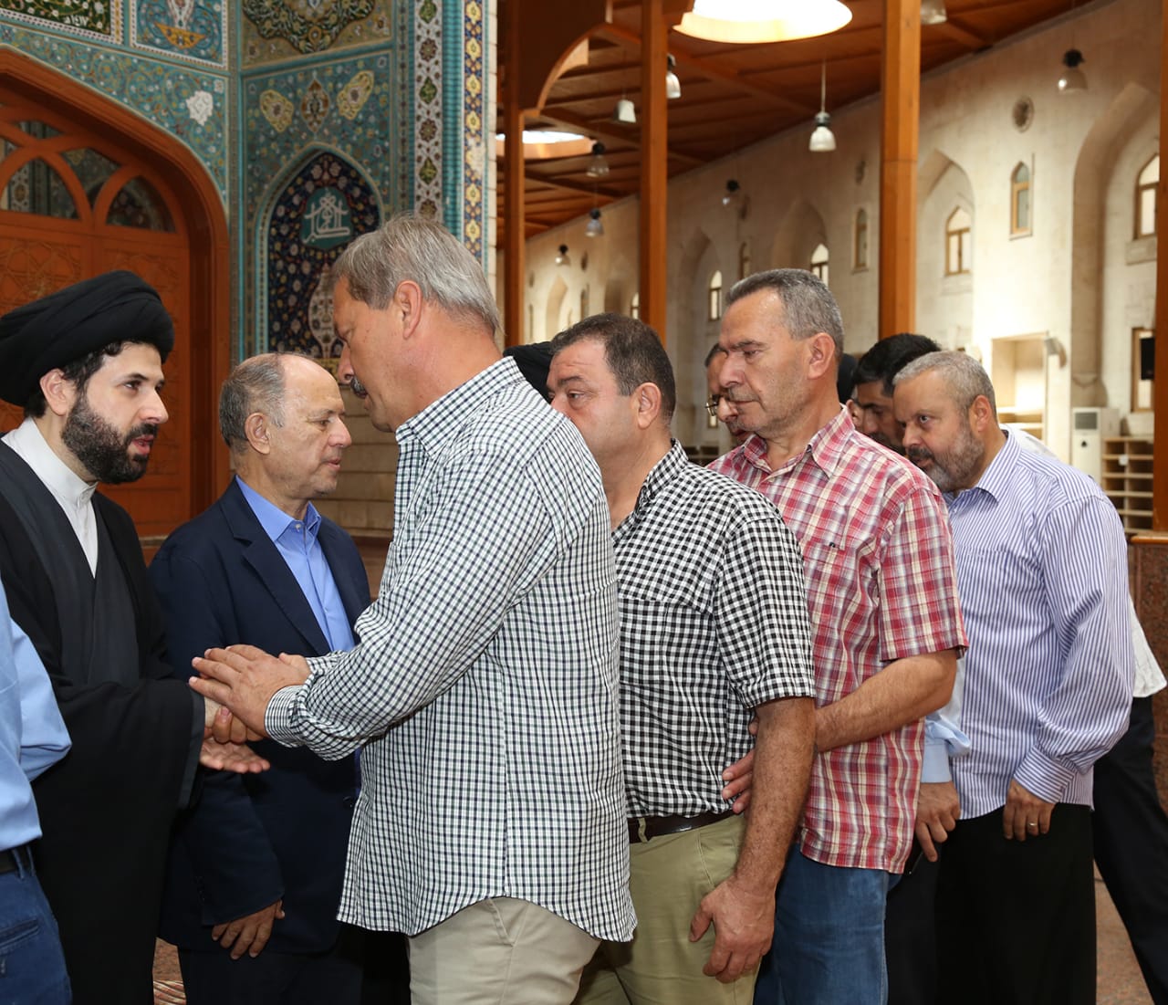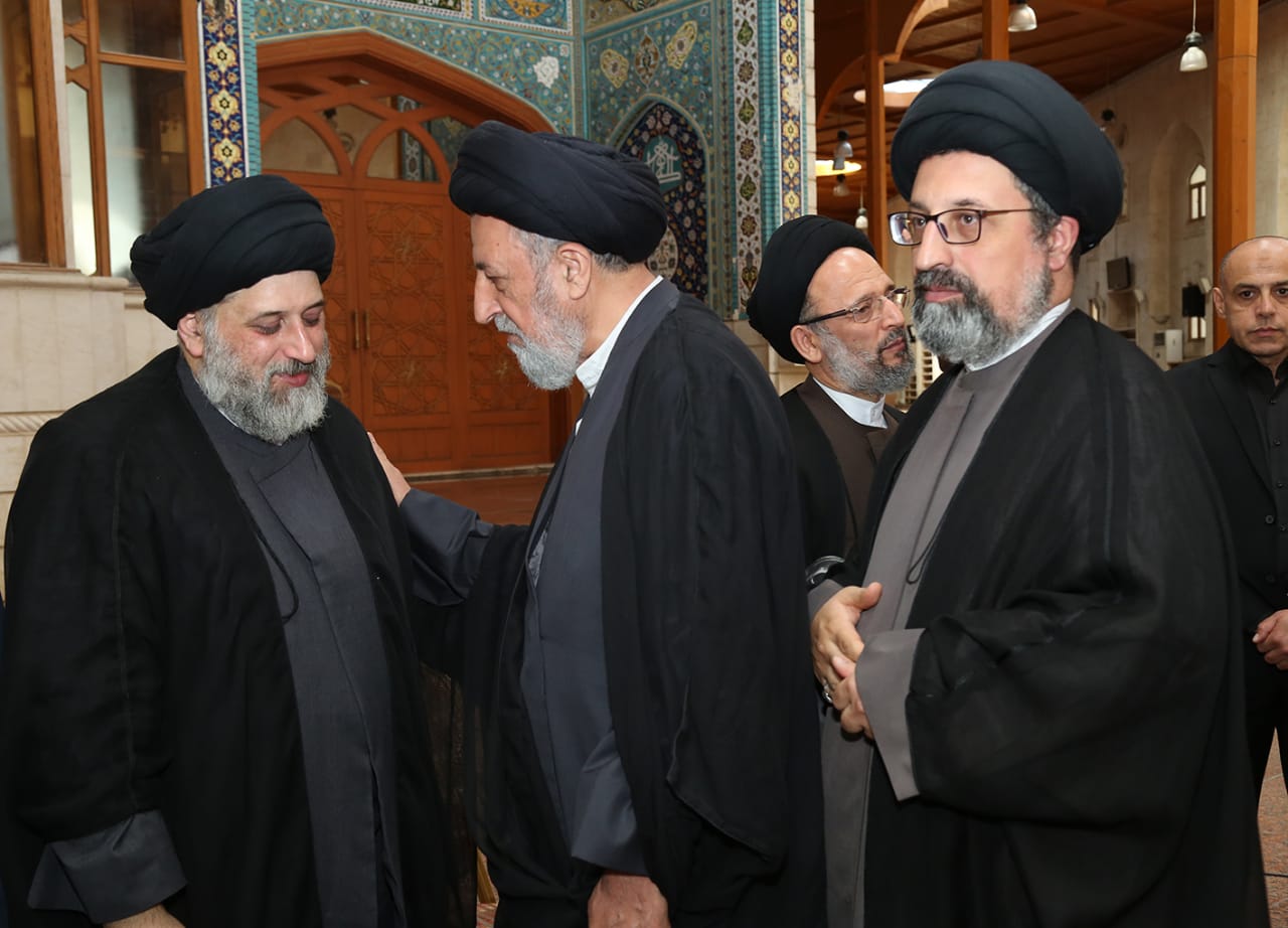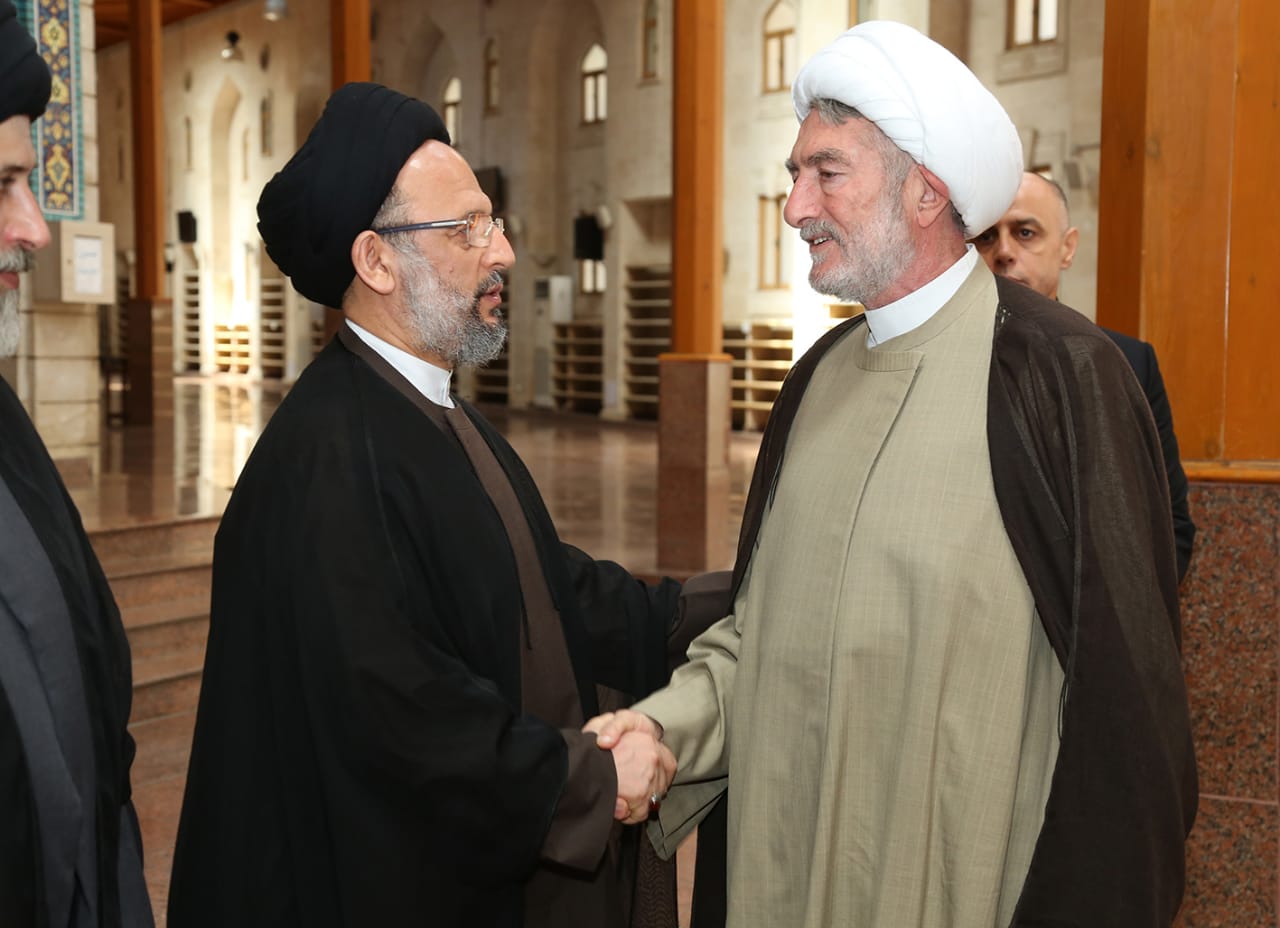 وقد حضر عدد من الشخصيّات السياسيّة والدينية والاجتماعية والبلدية والإعلامية والثقافية، لتقديم واجب العزاء. ومن الشّخصيّات، النّائب علي بزي، الذي قدّم العزاء باسم رئيس مجلس النوّاب نبيه بري وحركة أمل، كما حضر معزّياً رئيس المجلس التنفيذي في حزب الله، السيّد هاشم صفي الدين، والمفتي الجعفري الممتاز الشّيخ أحمد قبلان، والنائب إبراهيم الموسوي، ووفد من الجماعة الإسلامية برئاسة أمينها العام السابق إبراهيم المصري، والوزير السابق إبراهيم شمس الدين، والأمين العام السابق للمحامين العرب عمر زين، والأمين العام لملتقى الأديان سماحة الشيخ حسين شحادة، والمستشار الثقافي الإيراني في لبنان محمد مهدي شريعتمدار، ووفد من بلديات حارة حريك برئاسة رئيسها زياد واكد، إضافةً إلى وفود شعبية غصّت بهم الباحة.