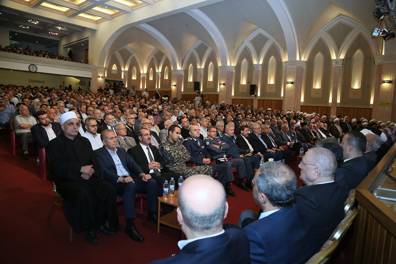 وتابع أما المفردة الرابعة فهو بيت الله.. البيت الجامع الذي أراده الله سبحانه وتعالى ملتقى الناس بكل تنوعاتهم.. نحن نسعى ونعمل حثيثا ليظل لهذا المكان حضوره وأهميته ..نريده أن لا يتفرغ من مضمونه أو يبتعد عن دوره... نريده أن يكون مساحة للروح وللأمن النفسي والطمأنينة المفقودة ( ألا بذكر الله تطمئن القلوب)..