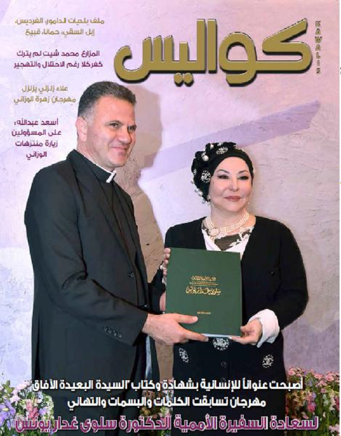 - السفيرة الاممية الدكتورة سلوى غدار يونس بشهادة وكتاب السيدة بعيدة الافاق، كتاب يؤرخ مسيرتها للأب ميخائيل قنبر، وشهادات من جهات رسمية دولية وأممية