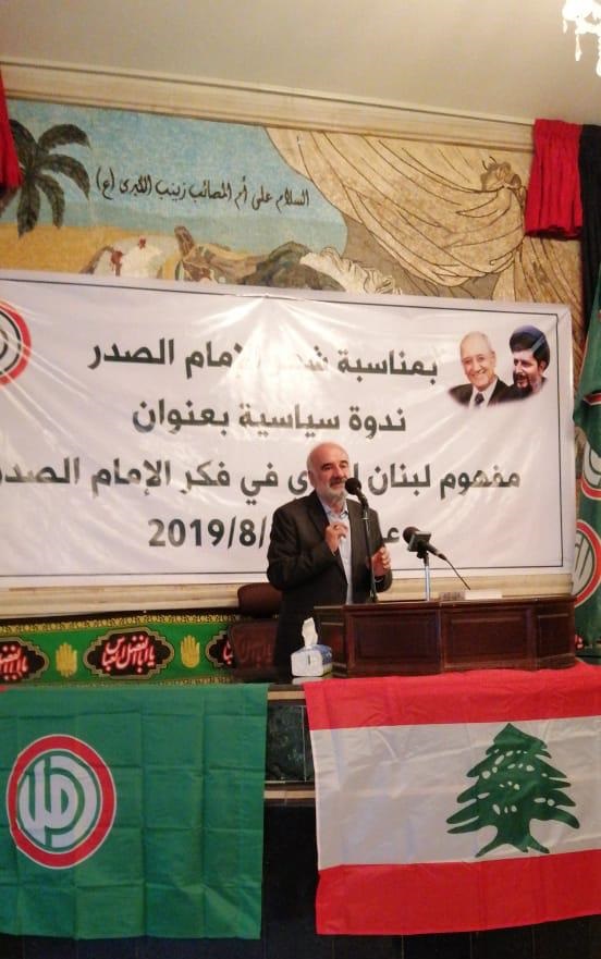 في اطار احياء فعاليات شهر اﻻمام السيد موسى الصدر، وتحت عنوان "مفهوم لبنان القوي في فكر اﻻمام الصدر"، نظمت حركة أمل ندوة سياسية في النادي الحسيني لبلدة العديسة حضرها رئيس المكتب السياسي للحركة الحاج جميل حايك وقيادات حركية وفعاليات سياسية وبلدية وروحية من مختلف الطوائف وحشد كبير من ابناء العديسة والقرى الحدودية.