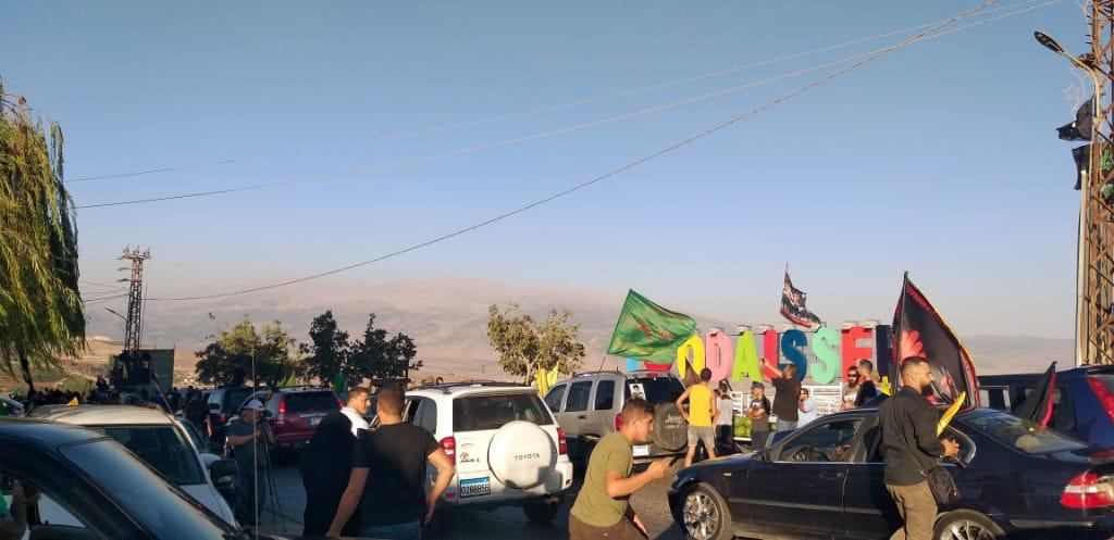 وصل الى نقطة البانوراما في بلدة عديسة - قضاء مرجعيون عند الحدود اللبنانية الفلسطنية المحتلة، وبدعوة من ثورة المختار الثقافي في منطقة النبطية وضواحيها، موكب سيار يضم حوالي 120 سيارة ودراجة نارية، قادم من منطقة النبطية، رافعين الأعلام الحزبية والرايات العاشورائية، حيث وقفوا وقفة تضامنية وذلك تأييدا لدعم المقاومة الإسلامية بعد عملية الشهيدين حسن زبيب وياسر ضاهر، في مارون الراس يوم امس، ورددوا الهتافات عبر مكبرات الصوت دعماً لمواقف السيد حسن نصر الله والتمسك بالأرض والصمود في وجه العدوان الإسرائيلي، في ظل غياب تام لقوات العدو الإسرائيلي في الجهة المقابلة للحدود.