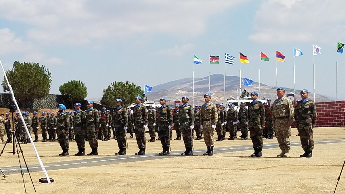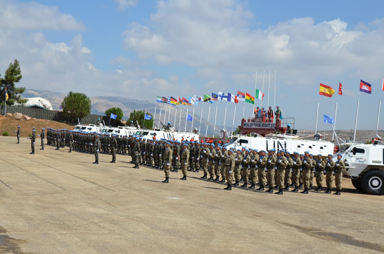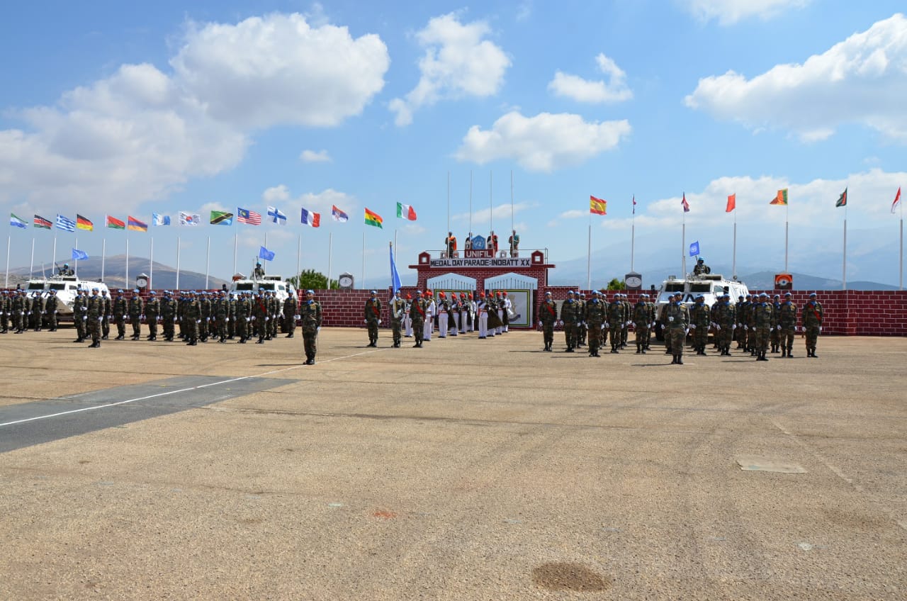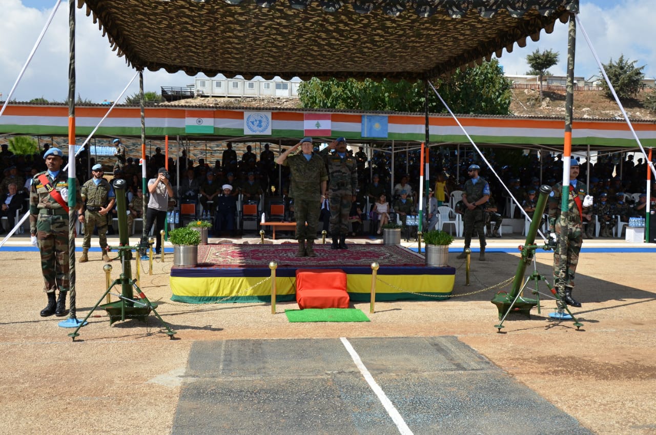 بدأ العرض العسكري بدخول الوحدات ساحة العرض والذي أعقبه حرس الشرف وتفقد العرض من قبل ضيف الشرف. بعد ذلك، تم منح جنود الكتيبة الهندية وأفراد الوحدة الكازاخستانية ميداليات السلام من قبل قائد القطاع الشرقي في اليونيفيل، وأكمل تقليد الاوسمة عدد من الشخصيات المدنية والعسكرية اللبنانية. تلا ذلك عرض ثقافي راقص رائع من الهند، وأداء متألّق للفرقة الموسيقية في الكتيبة الهندية التي أسرت الجمهور بألحان عسكرية مشهورة وحركات رشيقة متزامنة وأيضاً أداء أغنية وطنية من قبل عناصر من الوحدة الكازاخستانية والتي تشارك للمرة الأولى في مهمات حفظ السلام.