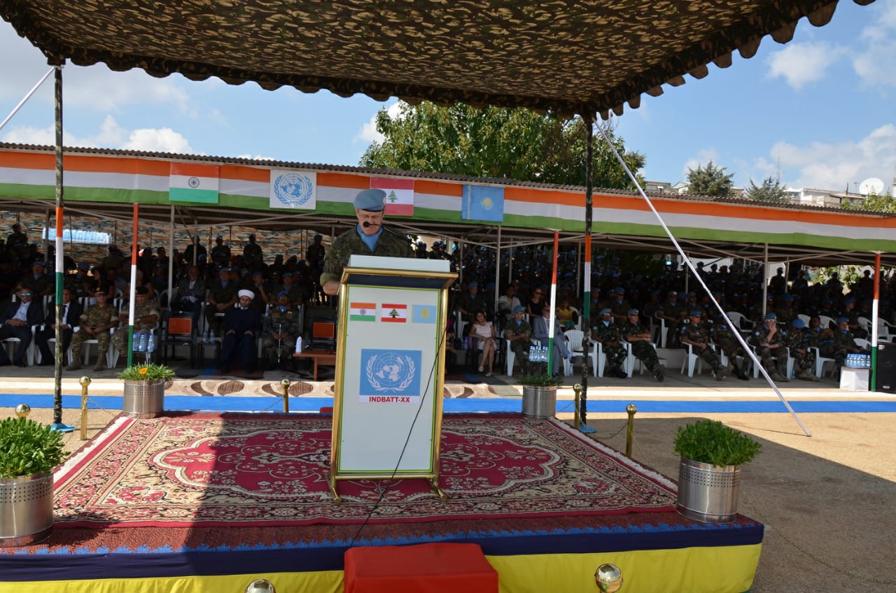 وقد أثنى الجنرال في كلمته في هذه المناسبة على الكتيبة الهندية وعلى خدمتها في الحفاظ على السلام. وقد أشار بشكل خاص إلى العمل الإنساني إضافة الى مهامها في الحفاظ على الامن والسلام في منطقة عملياتها، والتي فازت بقلوب وعقول السكان المحليين. كما أشاد بالتعاون بين الجيش اللبناني والسلطات المدنية في مساعدة اليونيفيل لتحقيق السلام والاستقرار المستدامين في جنوب لبنان.