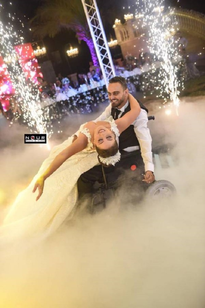 قصتهما باتت مثالاً للحب الحقيقي، بعدما انتشرت في وسائل التواصل الاجتماعي من خلال مقطع فيديو يظهر عروساً وهي ترقص فرحاً مع حبيبها وهو على كرسيه المتحرك، في مشهدٍ اثار اعجاب رواد "فايسبوك" حيث شاركوا في نشره، معبرين عن فرحتهم بهما وبقدرتهما على تجاوز كل العوائق والحواجز التي وقفت في طريقهما.... هما العريسان جمال بشاشة وعروسه عليا شمعة اللذان جمعتهما قصة حب على مدى عشر سنوات قبل ان تتكلل بالزواج.