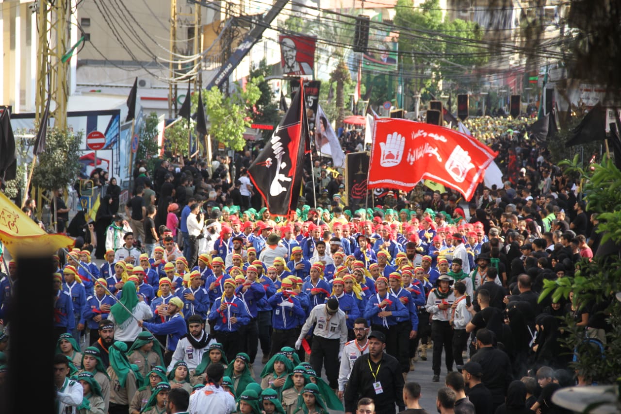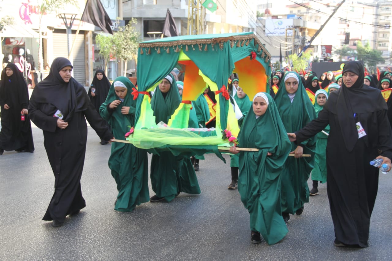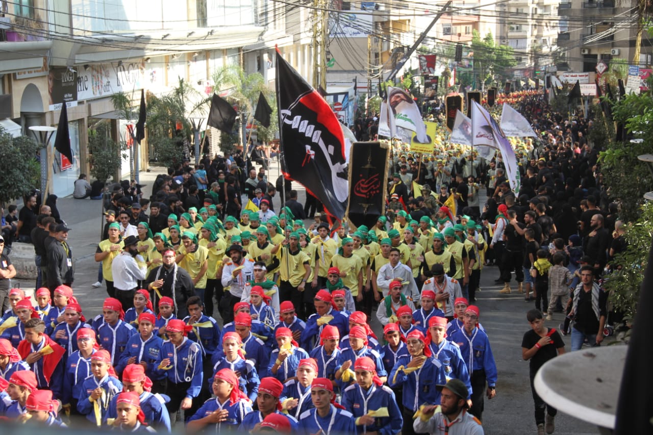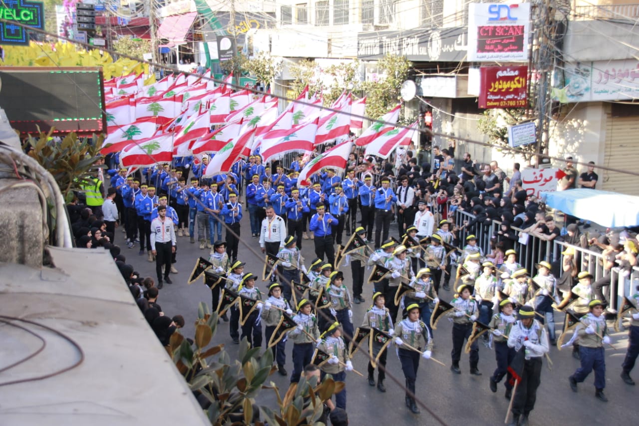 وانطلقت المسيرة من ساحة عاشوراء ، وسط مدينة النبطية ، تتقدمها الفرقة الموسيقية المركزية التابعة لكشافة الامام المهدي، وحملة الاعلام اللبنانية والفلسطينية ورايات "حزب الله" ورايات سوداء وخضراء كتب عليها " ياحسين "، وسار خلفهم عشرات من فرق الفتية في كشافة الامام المهدي الذين رفعوا أعلاما كشفية ورايات حسينية، إضافة الى صور للامام الراحل روح الله الخميني , و للامام السيد علي الخامنئي وللسيد موسى الصدر وللأمين العام ل"حزب الله" السيد حسن نصرالله وصور لشهداء وقادة في المقاومة الاسلامية.