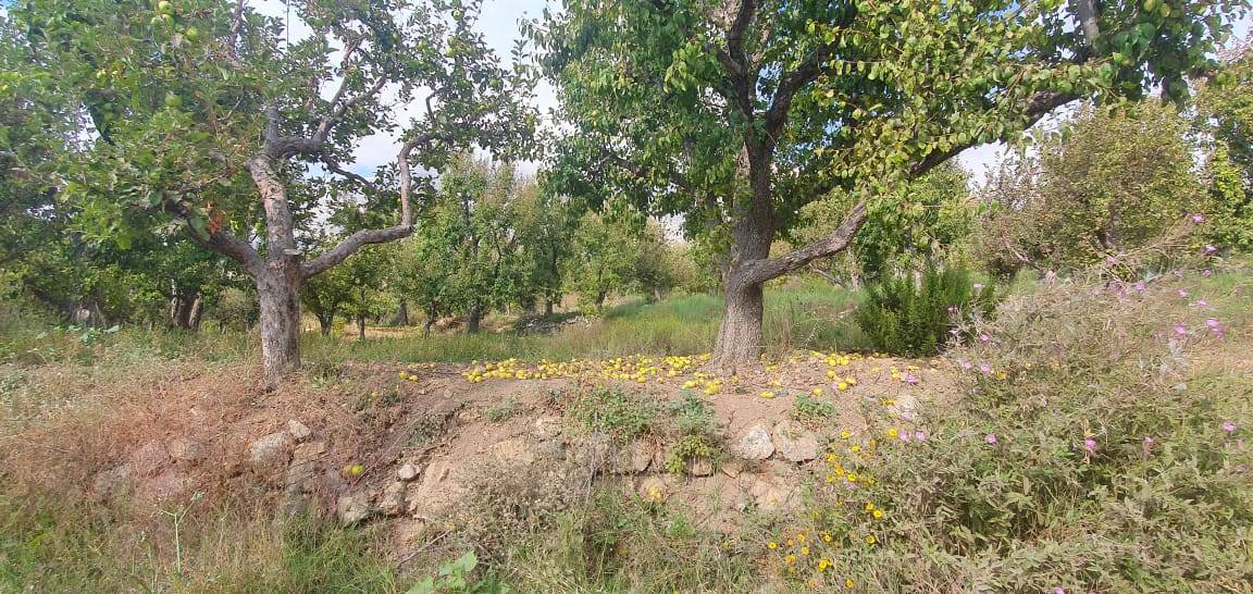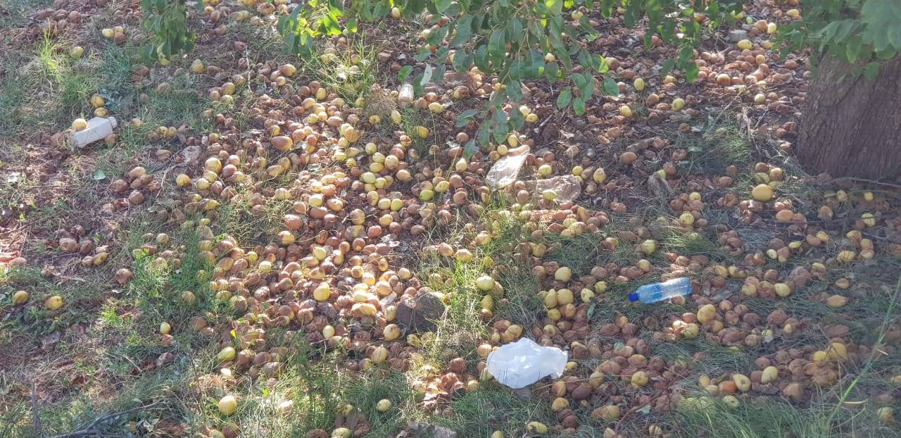 الإجاص صريعاً على الأرض تحت أمه لأن المزارعين فضلوا أن يبقى "الموسم على أمه عوضاً من مزيد من المصروف عليه قطافاً وتبريداً، وهو إن بيع في الاسواق فلن يرد أكلاف الرش والنكش والتقليم والأعمال الحقلية الاخرى".