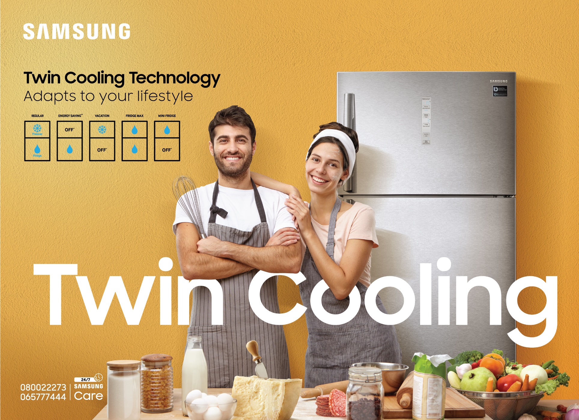 وتعد ثلاجات "سامسونج" بنظام التبريد المزدوج Twin Cooling على اختلاف طرازاتها وسعاتها من أفضل الحلول التي خرجت بها الشركة على العالم لتزين بها مطابخ المستهلكين نظراً لتصميمها الأنيق، ولتعزز معها قدرتهم على الحفاظ على الأطعمة المختلفة طازجة ونضرة لأطول فترة ممكنة مع نسبة رطوبة موزعة بشكل متوازن، وبنسبة تصل إلى 70%، أي أكثر بكثير مما تقدمه الثلاجات التقليدية التي تبلغ نسبة الرطوبة فيها 30% فقط، وهو ما يعني تخليص المستخدمين من عبء التسوق المتكرر خلال فترات قصيرة، إلى جانب تمكينهم من الاستفادة من الأطعمة المخزنة داخلها دون أن تتعرض للذبول أو الجفاف سواء كانت نيئة أو مطبوخة لأكبر وقت ممكن دون الحاجة للتخلص من الأطعمة باستمرار.