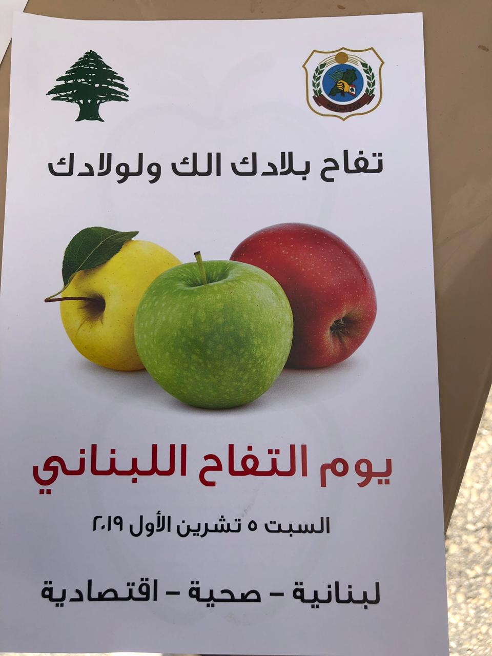 اقيم اليوم نشاط يوم التفاح اللبناني تحت عنوان "تفاح بلادك الك ولولادك" الذي دعت اليه وزارة الزراعة، برعاية رئيس الجمهورية العماد ميشال عون على مثلث مرجعيون - الخيام - ابل السقي، بحضور مستشار وزير الزراعة جعفر عباس، رئيس مصلحة الزراعة في النبطية حسين السقا، رئيس مكتب الارشاد الزراعي في مرجعيون فؤاد ونسة، مدير مدرسة الخيام الزراعية غيث معلوف، بلدية جديدة مرجعيون ممثلة بفاتنة بكار، ممثل عن منظمة الفاو صالح مطر، ممثل رئيس اتحاد العرقوب رئيس بلدية شويا عصام الشوفي، وعدد من موظفي الوزارة الذين قاموا بتوزيع التفاح مجانا على المواطنين والمارة.