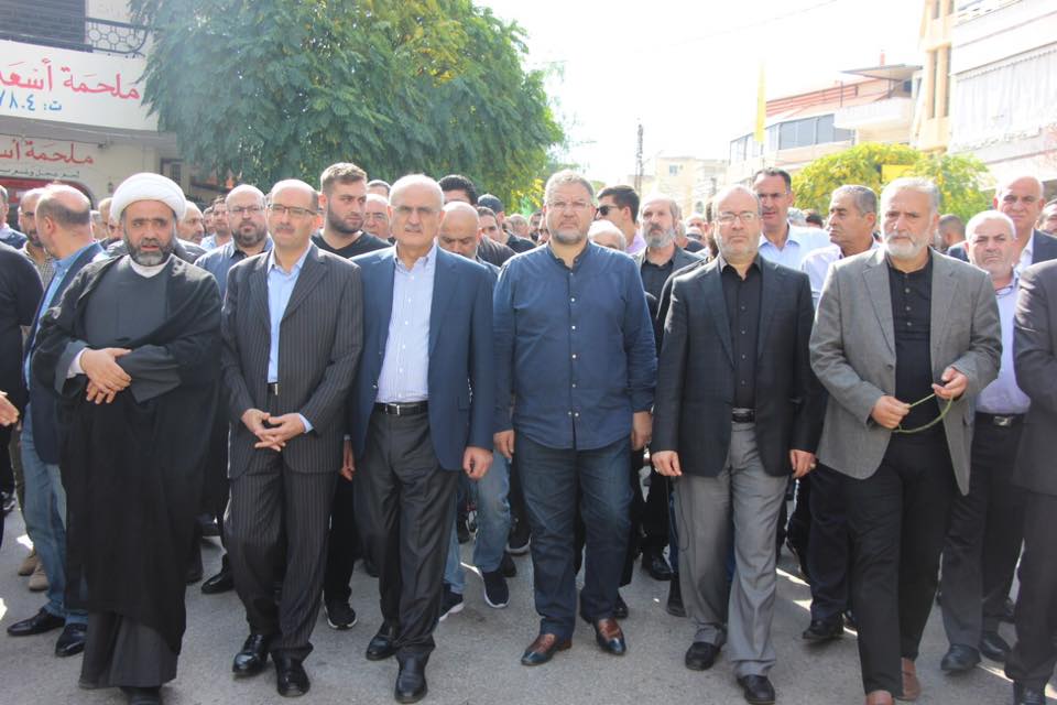 وانطلقت مراسم التشيع من امام حسينية البلدة بمسيرة حاشدة حيث سجي نعش الفقيد، يحيط به رجال المقاومة الاسلامية وقد جال الموكب شوارع البلدة يتقدمه حملة الرايات و الفرق الكشفية على وقع الهتافات الحسينية.