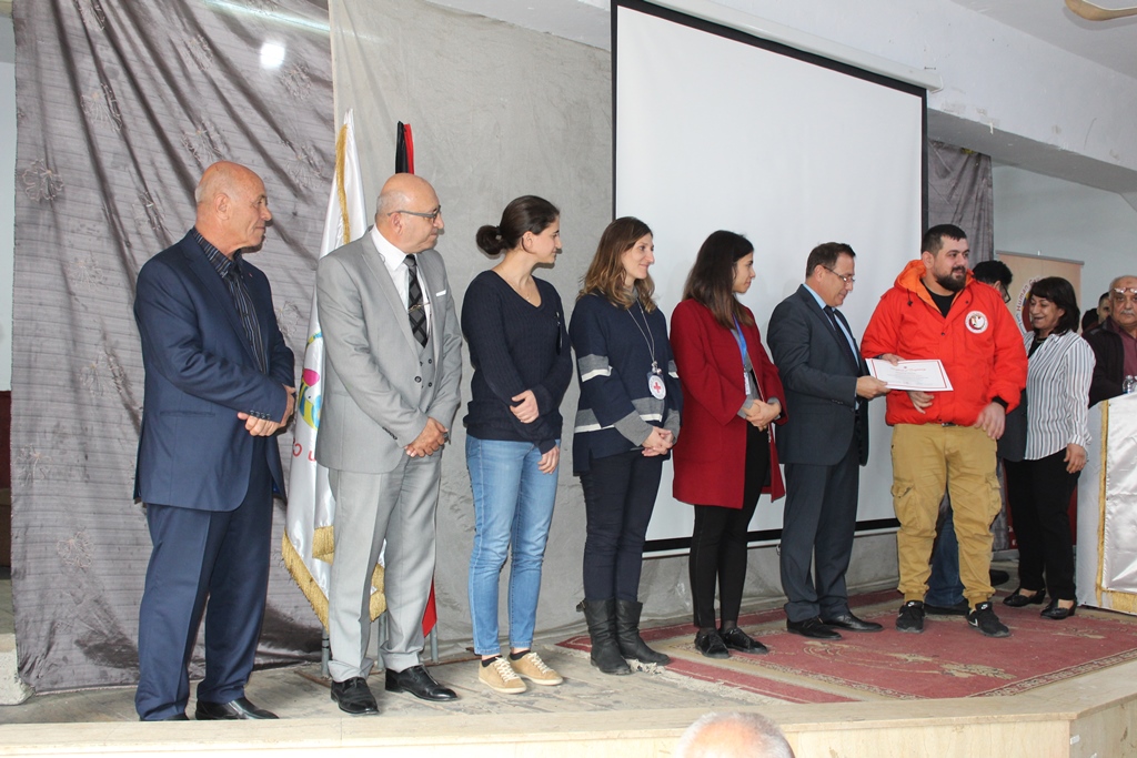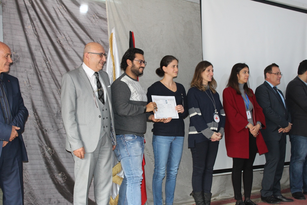 تخلل الإحتفال كلمات للصليب الأحمر الدولي، برنامج الأمم المتحدة الإنمائي (UNDP)، الخريجين وكلمة لجمعية النداء الإنساني.