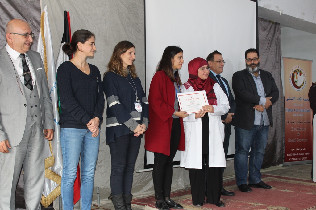 أقامت جمعية النداء الإنساني إحتفالاً تكريمياً للأطباء والممرضين الذين خضعوا لدورات في دعم الإستجابة الطبية الطارئة في مخيم عين الحلوة والجوار، وذلك بدعم من برنامج الأمم المتحدة الإنمائي(UNDP) ، والصليب الأحمر الكندي، واللجنة الدولية للصليب الأحمر، تحت عناوين "دعم الحياة والإنعاش القلبي لحديثي الولادة والبالغين" و "طب الطوارئ وتقنيات العناية الفائقة" وذلك في قاعة ناجي العلي – مخيم عين الحلوة.