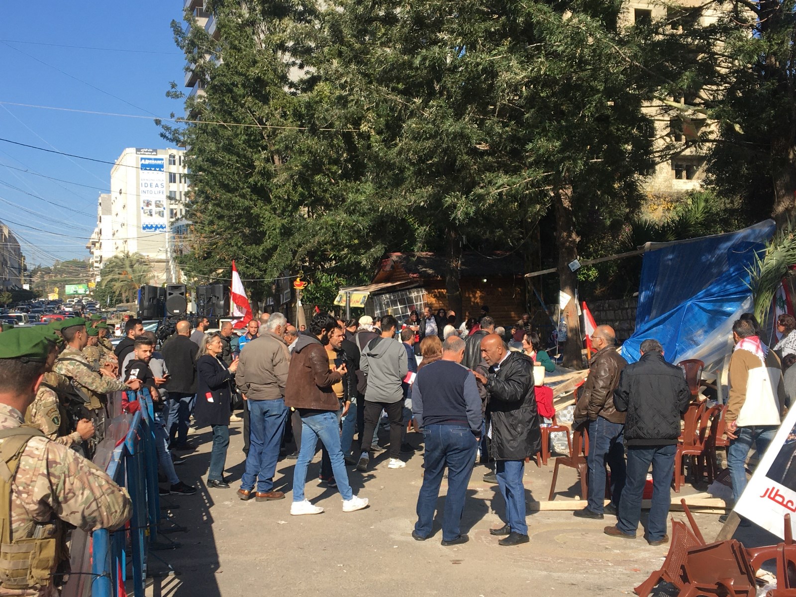 نظم معتصمون في النبطية وقفة احتجاجية على خلفية تحطيم خيمتهم بالقرب من السرايا الحكومية في النبطية، ورددوا الاغاني والشعارات الوطنية، مستنكرين ما حدث.