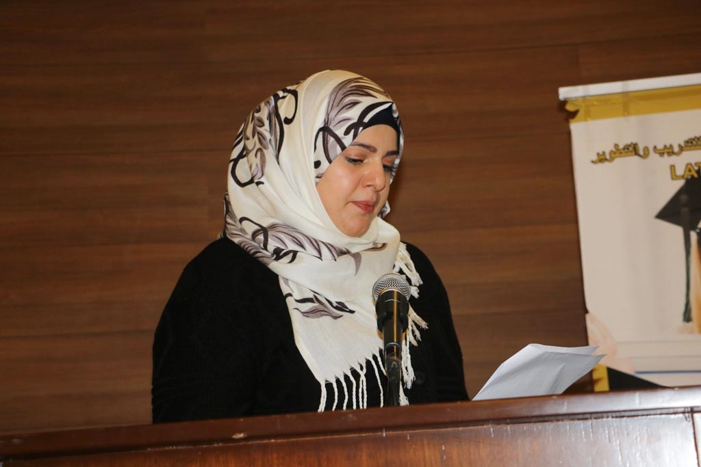 ثم ألقت كلمة المتخرجين الطالبة إكرام عزّام التي شكرت الأكاديمية على ما قدمته للخريجين خلال فترة الدورات التي التحقوا بها في الاختصاصات المختلفة.