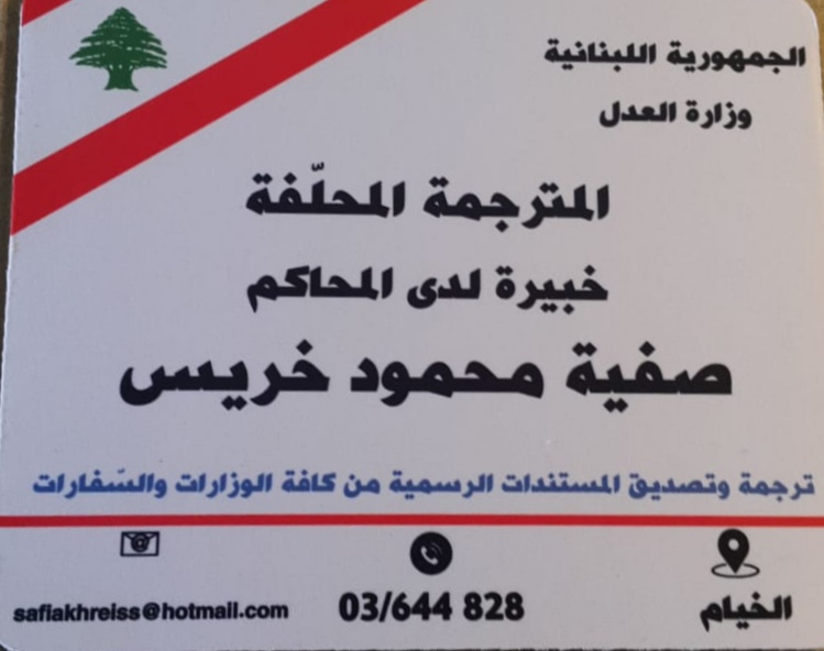 خاصة وأن الأستاذة صفية هي مترجمة محلفة خبيرة لدى المحاكم، يقدّم مكتبها ترجمة قانونية لجميع انواع الوثائق والمستندات الأكاديمية، القانونية، التجارية والمستندات الرسمية والوثائق الشخصية والشهادات والعقود وتصديق معاملات من كافة الجهات الحكومية والوزارات والسفارات، إضافة إلى تدقيق لغوي.
